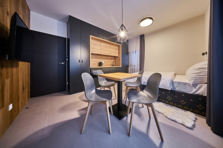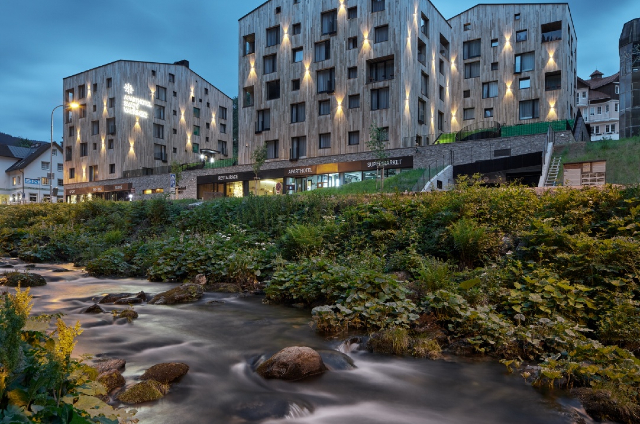 You can get the feeling of staying in Aspen, if you decide for Svatý Vavřinec Aparthotel (Saint Lawrence Aparthotel). Located right in the centre of Pec pod Sněžkou it offers trendy and comfortable accommodation of the four-star hotel level. Design, comfort and convenience are in harmony in each studio and apartment. Adults can indulge in wellness centre, children can enjoy the children's and teenager´s game room, or they can meet for dinner in restaurant. And remember, Saint Lawrence (svatý Vavřinec) boast its own wine bar with a large selection of wine.