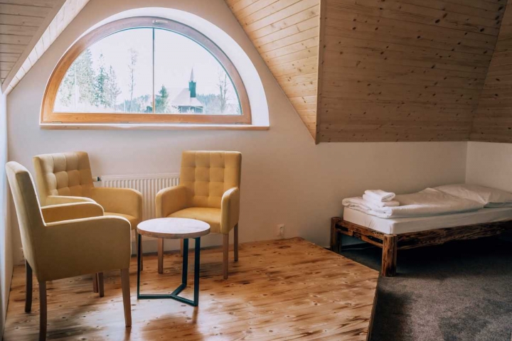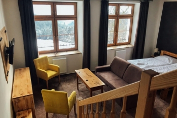 Bezručova škola ve Starých Hamrech není jen tak obyčejná škola. Po kompletní rekonstrukci je z ní moderní hotel, který nabízí dvoulůžkové a třílůžkové pokoje a jeden velký apartmán až pro deset osob. Všechno je tu zařízeno minimalisticky, přesto tak, abyste tu měli vše, co potřebujete. Všechny pokoje mají samostatnou koupelnu se sprchovým koutem nebo vanou a toaletou. Velkými okny máte navíc parádní výhled. Zažijte Beskydy v autentickém hotelu.