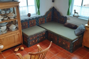 Come to Krkonoše to recharge your energy and enjoy a quiet holiday in the stylish cottage of Lukesu, which is situated in the heart of the Krkonoše Mountains, with its romance and unique atmosphere of antiquity. It is ideal for couples with children, as well as for companies of friends and colleagues. It can accommodate up to 16 people. The house with Finnish sauna is situated in a beautiful and quiet place in the Krkonoše National Park, next to the forest, which offers an amazing view of the surrounding mountain areas. The 5 rural rooms have their own bathroom with a toilet. On the first floor there is a living room with a large sofa, a rocking chair, a fully equipped kitchen and a dining table for 16 people (including children). The main attraction of the living room is a large moss-coloured furnace with a lounge on the back wall. You can also use the Finnish sauna with shower, spend time in the recreation area with the entrance to the garden. The Internet just flies here, and the parking is available in the yard. You can also use the Finnish sauna with shower, spend time in the recreation area with the entrance to the garden. The Internet just flies here, and the parking is available in the yard.
