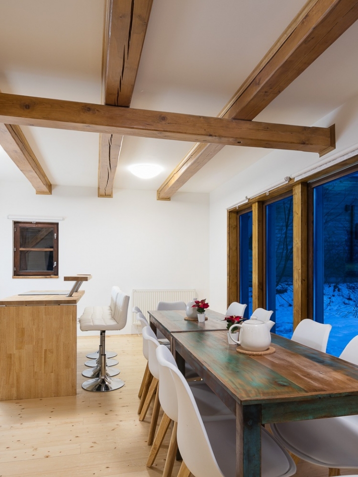Chalupy pod Liščím Kopcem (Cottages Under Fox Hill) are located on the outskirts of Vrchlabí, a town set in charming countryside of the Krkonoše mountains, about 1 km from the town centre and 5 km from the Ski Resort Herlíkovice. Positioned on the border of the Krkonoše National Park the premises offer opportunities for cycling, hiking, fishing, archery, skiing, taking skiing lessons, etc. Bike rental, ski rental, and ski lessons are provided on the spot.