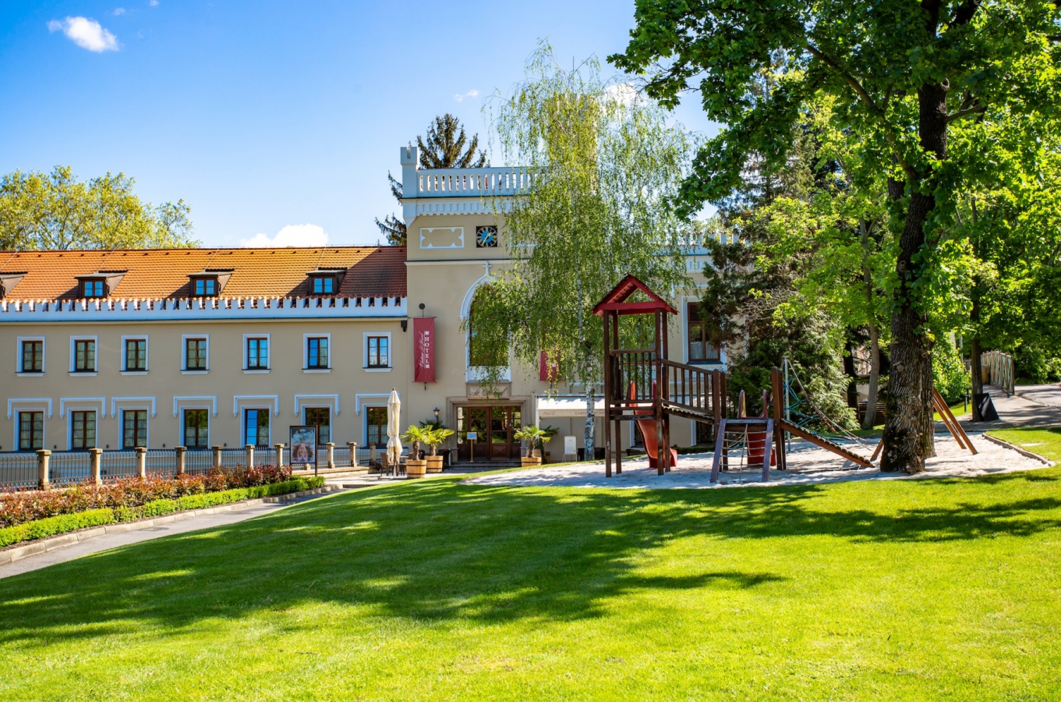 Accommodation in chateau in a tranquil area near the centre of Prague? Why not. Reconstructed neo-Gothic chateau in Prague 4, Krč, is located in the owner's property. You will find the English park with idyllic ponds. Above standard accommodation is provided in 28 double rooms. You can enjoy top wellness, delicious meals prepared by Ondřej Slanina, or golf. Chateau St. Havel is the place for a romantic weekend, honeymoon, wedding or corporate meeting.