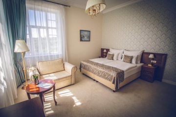 A royal hotel in a royal town. You will find 8 rooms and 1 apartment, which is the guarantee for the intimate atmosphere. Rooms are furnished in the aristocratic, chateau-like style. Hotel Kateřina, located in a villa, offers a small wellness area with sauna, relaxation lounge, Thai massages, bike shed and bike rental. The benefit we offer is unlimited and self-service check-in.