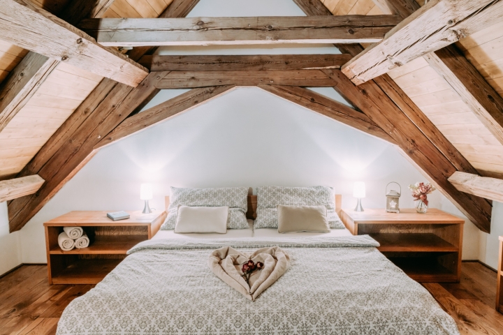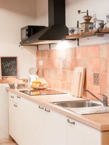 A Czech song sounds like this: “…horses are grazing around Třeboň…”. And you can really watch horses nearby Na Špejcharu apartments. Four apartments for 25 persons were built in a recently renovated granary dating from the mid-17th century. Original massive elements of the premises are well combined with a refined style and smart design. So, if you appreciate historical architecture and Czech crafts, you will definitively love it here. Apartments vary in size, layout and equipment. You can prepare your meal either in your kitchen or in the garden, where you can have a barbecue party. If you explore the South of Bohemia on bikes, you can safely store them in a lockable bike shed. Your cars can be parked at the accommodation. And after you spend your day riding a bike, relax in a sauna in the evening!