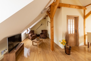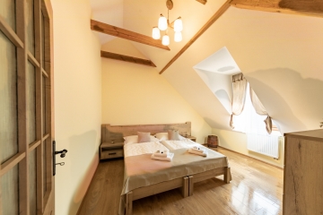 How about enjoying a weekend or week holiday at Skočice? You will experience staying in a never to forget Renaissance fort. In the blanket of village atmosphere, this romantic and enclosed homestead surrounded by beautiful meadows and a pond offers 7 fully equipped apartments with kitchenettes. Premises are tuned to romantic old Bohemian rural style, with lots of period elements and old Bohemian agriculture machinery on display. Since a large courtyard is enclosed, it makes the fort the ideal place for weddings. Your wedding party will be perfect here, with catering included.