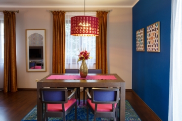 This completely renovated building is located in the picturesque Luhačovice Spa; a 10-minute walk from the Colonnade and the spa centre. There are 6 double and 2 quadruple fully equipped apartments, each of them with a totally different design. It's up to you to decide for any of them. Room interiors are far above standard hotel designs. You can relax in a hotel counter-current swimming pool, hot tub, Finnish and steam sauna, and a meeting room with a variety of facilities.