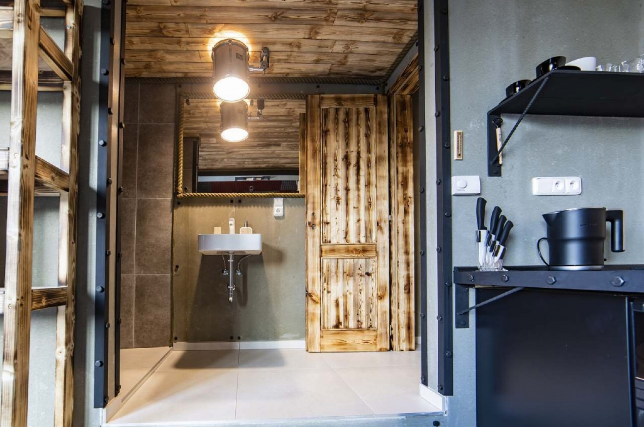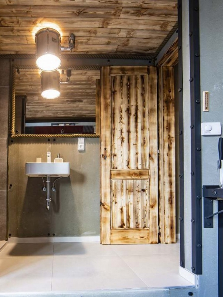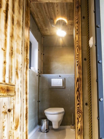 Do you love the energy of concerts? You can get the extraordinary experience in the room tuned up in a rock stage style. Blues, disco, techno, hip hop, jazz, pop, rock, metal, anything you want. Listen to any music from the play list in your mobile phone or tablet, connected to our electronic digital heart. And, imagine, you can also enjoy laser and strobe light shows. After your private concert finishes you can move to the outdoor relaxation zone with a luxurious whirlpool and unique stainless bath barrel. You will love it here.