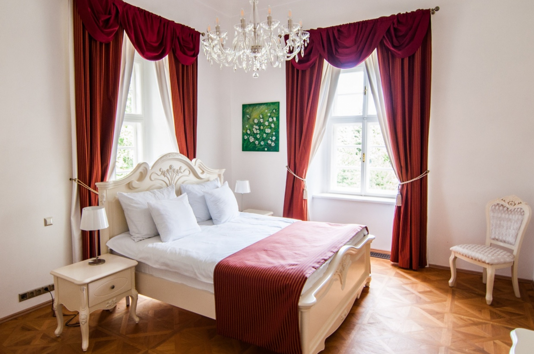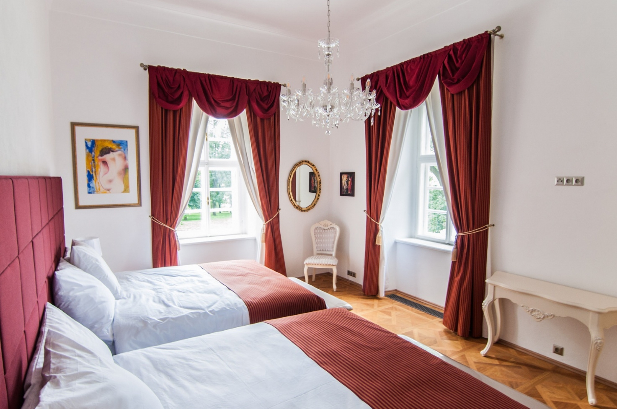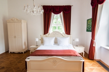 In this chateau of the late Baroque style, a former medieval water fortress, you will be fascinated with its historical background, you can refresh yourself in a cosy restaurant, enjoy outdoor sitting in the chateau park, organise celebrations, weddings, and meetings with friends. The chateau offers accommodation in luxurious apartments and rooms. Space, comfort and luxury just for you, are underlined with handmade stylish furniture made of massive wood. These historical premises meet the standards for modern, comfortable and healthy accommodation. The chateau is also ideal for weddings and conferences.