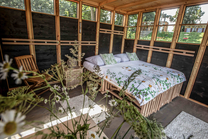 Представьте, что вы просыпаетесь на реке. Вид на тихую водную гладь прямо из постели. Можно просто открыть дверь и сразу пойти искупаться. И таким может быть ваш отдых, если вы остановитесь на территории природного курортного комплекса Slezské plovárny. Само месторасположение комплекса создаёт настоящий природный оазис: залив, в котором находятся речные домики Stulík и Sasanka, частично расположен и на территории национального природного парка Орлице. Домики идеально подходят для двух человек, но в них достаточно места и для четверых гостей или семьи с детьми. В домах есть всё необходимое для комфортного проживания, включая кухню и wi-fi. Однако уборная и ванная расположены на берегу. Насладиться отдыхом, понаблюдать за природой и звёздным небом можно не только во время прогулок, но и с крыши или плавучей террасы домов.
