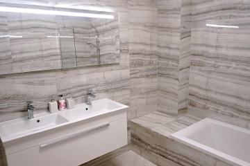 Хорошо оборудованные апартаменты, великолепная ванная с большой ванной.