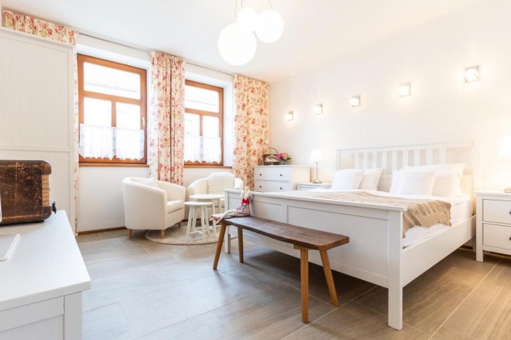 Апартаменты U Stařenky («У старушки») находятся в деревне Долни-Бояновице, на Мораве. Проживая здесь, вы сможете ближе познакомиться с самобытной культурой моравского региона Словацко. Первоклассные апартаменты отлично подойдут как для пар, так и для семей с детьми. Сад возле дома с зоной отдыха, барбекю и великолепным видом на костел св. Вацлава приятно дополнит ваш отдых. Завтрак можно заказать отдельно к проживанию. Ну а отличный вечер провести, к примеру, в небольшом винном погребке, расположенном прямо на территории комплекса.
