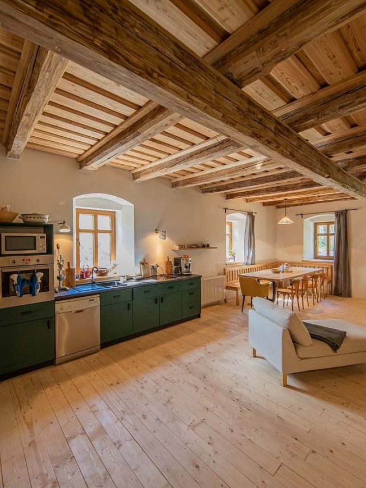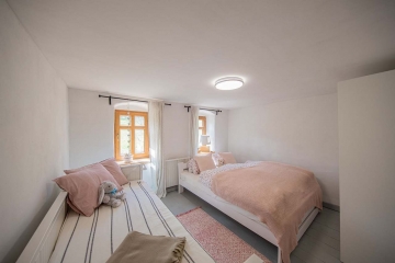 Дом прошёл капитальным ремонтом и стоит на краю деревни, за ним идут уже только пастбища и леса. Это идеальное место для семейного отпуска, будь то спортивного или простого отдыха.