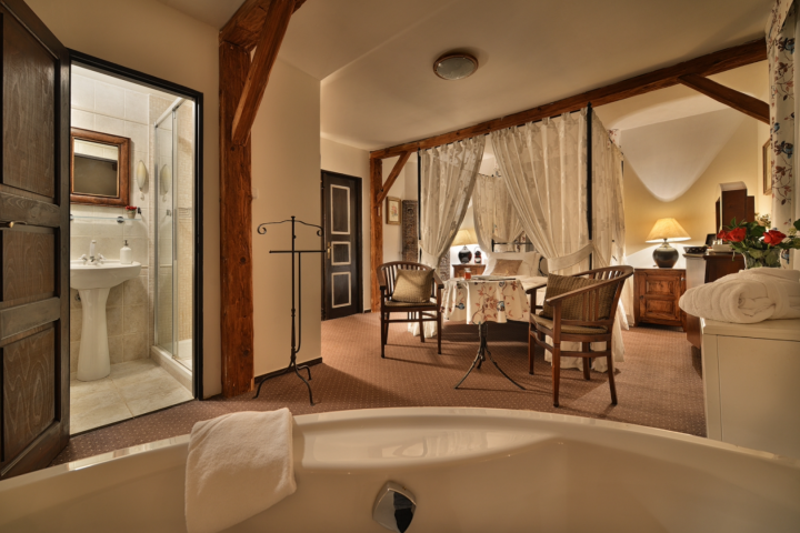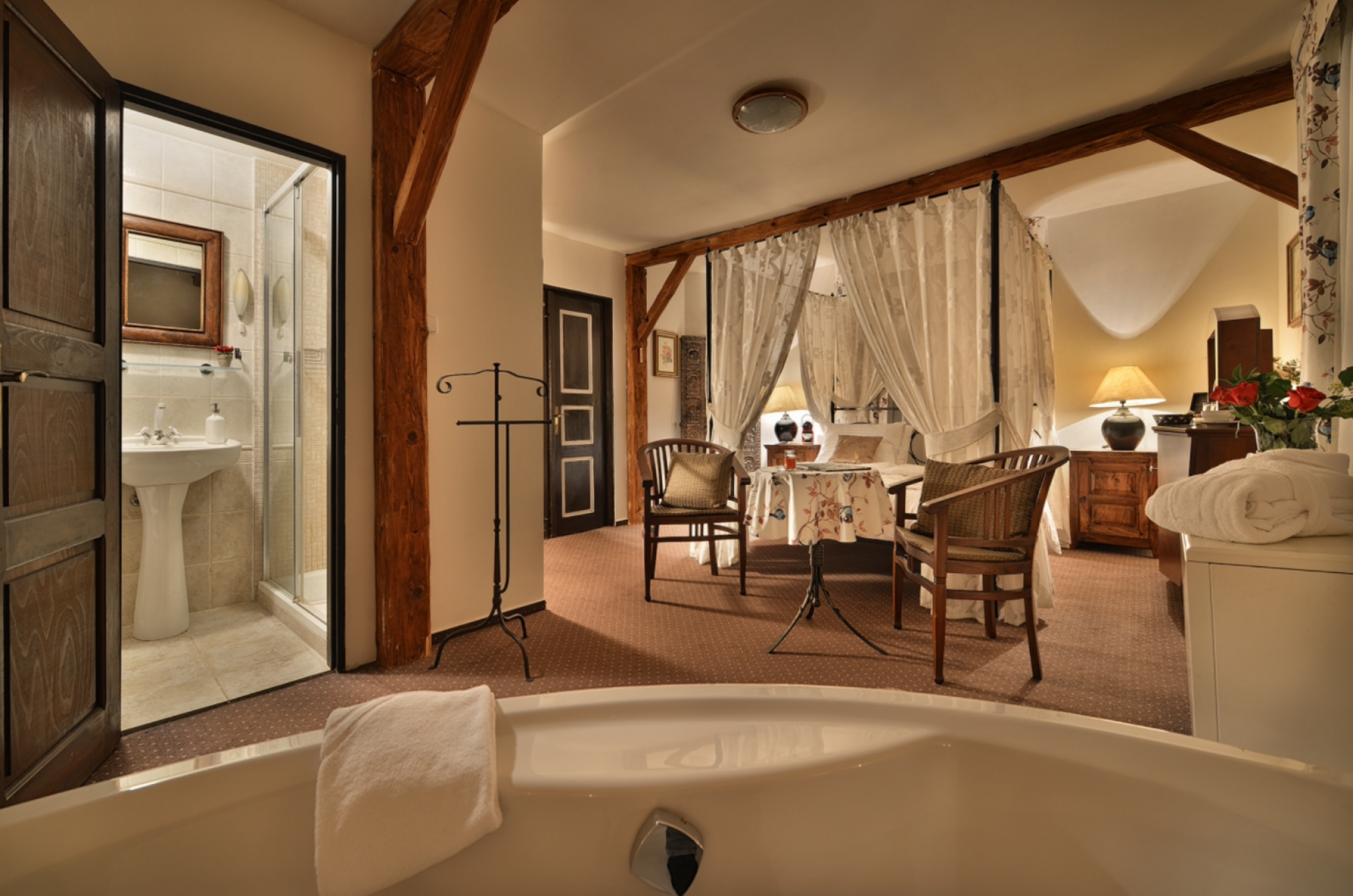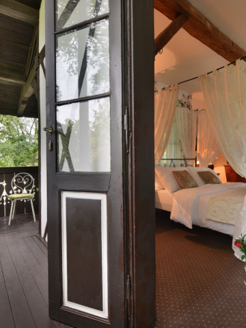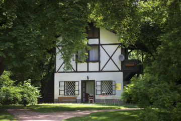 Domeček knížete Alexandra («Дом князя Александра») – это, несомненно, самое романтичное здание всего замкового комплекса Лоучень. Вы можете снять дом на выходные и даже на неделю. Изначально садовый павильон назывался «Швейцарский дом», недавно он был переименован и назван в честь князя Александра, который любил проводить здесь романтичные вечера. Дом двухэтажный. На первом этаже находится гостиная с прекрасным видом на замковый парк, мини-кухня и туалет. Уличная лестница ведёт в романтическую спальню с кроватью с балдахином и угловой ванной. На небольшой террасе можно сполна насладиться отдыхом под кронами деревьев. Царящая здесь волшебная атмосфера делает дом идеальным местом для первой брачной ночи или других романтических встреч и моментов.