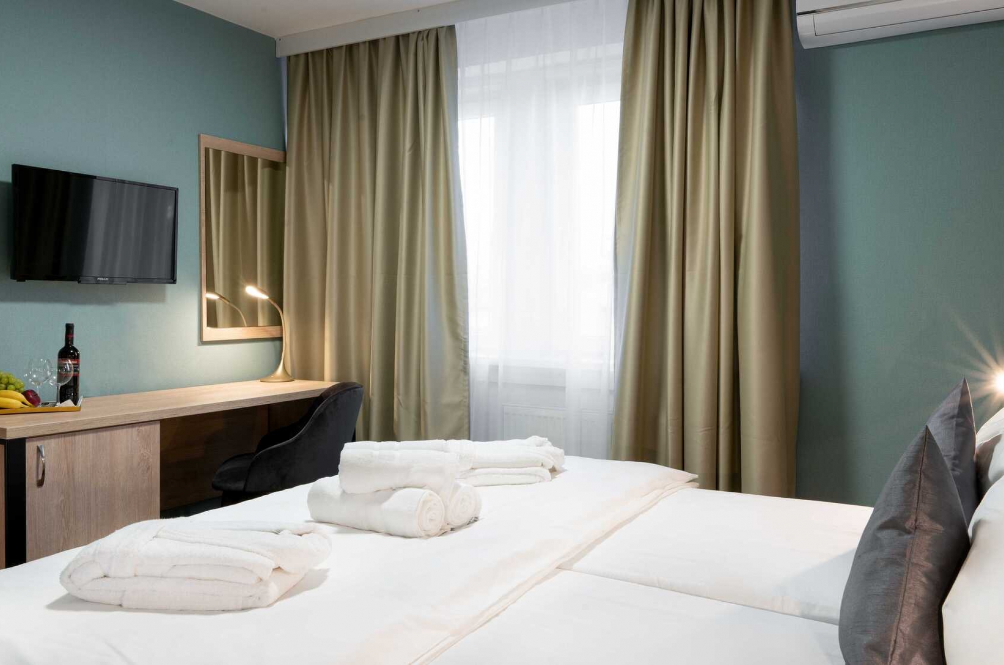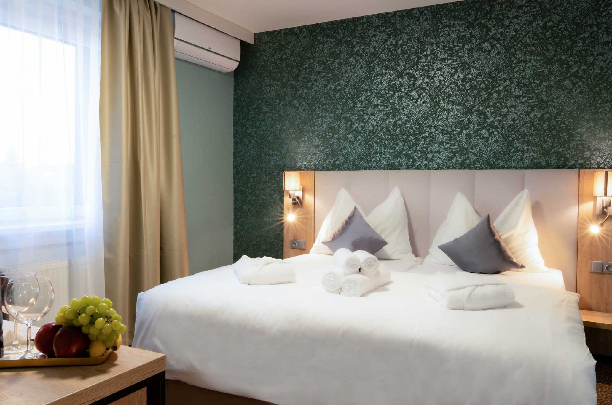 Хороший и сытный завтрак должен быть основой каждого успешного дня. Поэтому утром для Вас будет приготовлен разнообразный завтрак в виде «шведского стола», а тихим вечером Вы сможете прекрасно провести время в лобби-баре за бокалом вина или более крепких спиртных напитков.