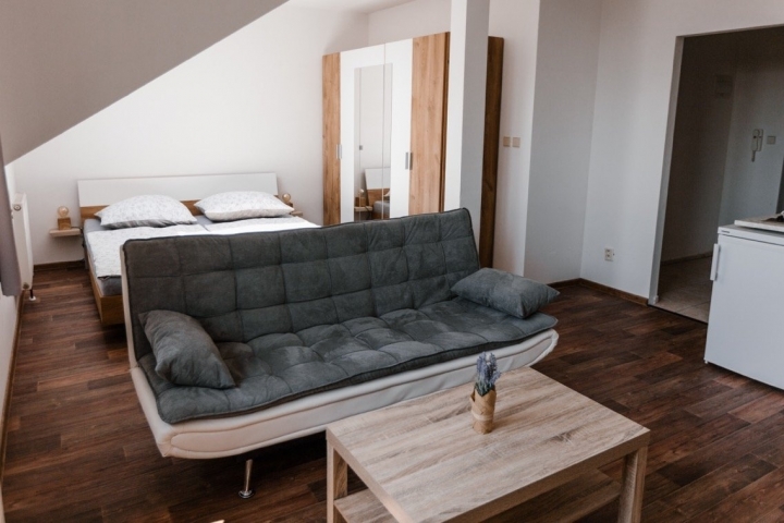 Это место вас непременно удивит! Гостевой дом Jez & Spi («Ешь и Спи») – отличный выбор как для соло-путешественников, так и для больших компаний: гостей свадеб, членов спортивных клубов и участников тимбилдингов. Комплекс расположен в городке Планице-у-Клатов. Остановиться вы можете как в одноместных, так и многоместных номерах. Для отдыха здесь есть практически всё: спа-центр с сауной и джакузи, крытый уличный бассейн, корты, тренажёрный зал и даже футбольное поле. При желании можно взять напрокат и велосипеды. В отеле – как понятно из самого названия – вас также ждёт отличная кухня. Местный ресторан специализируется на блюдах американской кухни; меню обновляется каждую неделю в зависимости от сезона и доступности фермерских продуктов из Пошумавы.