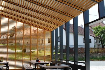 При отеле работает ресторан с достаточно оригинальным интерьером в стиле рустик. Заведение специализируется на блюдах американской кухни, меню еженедельно обновляется в зависимости от сезонности и доступности фермерских продуктов из Пошумавы.