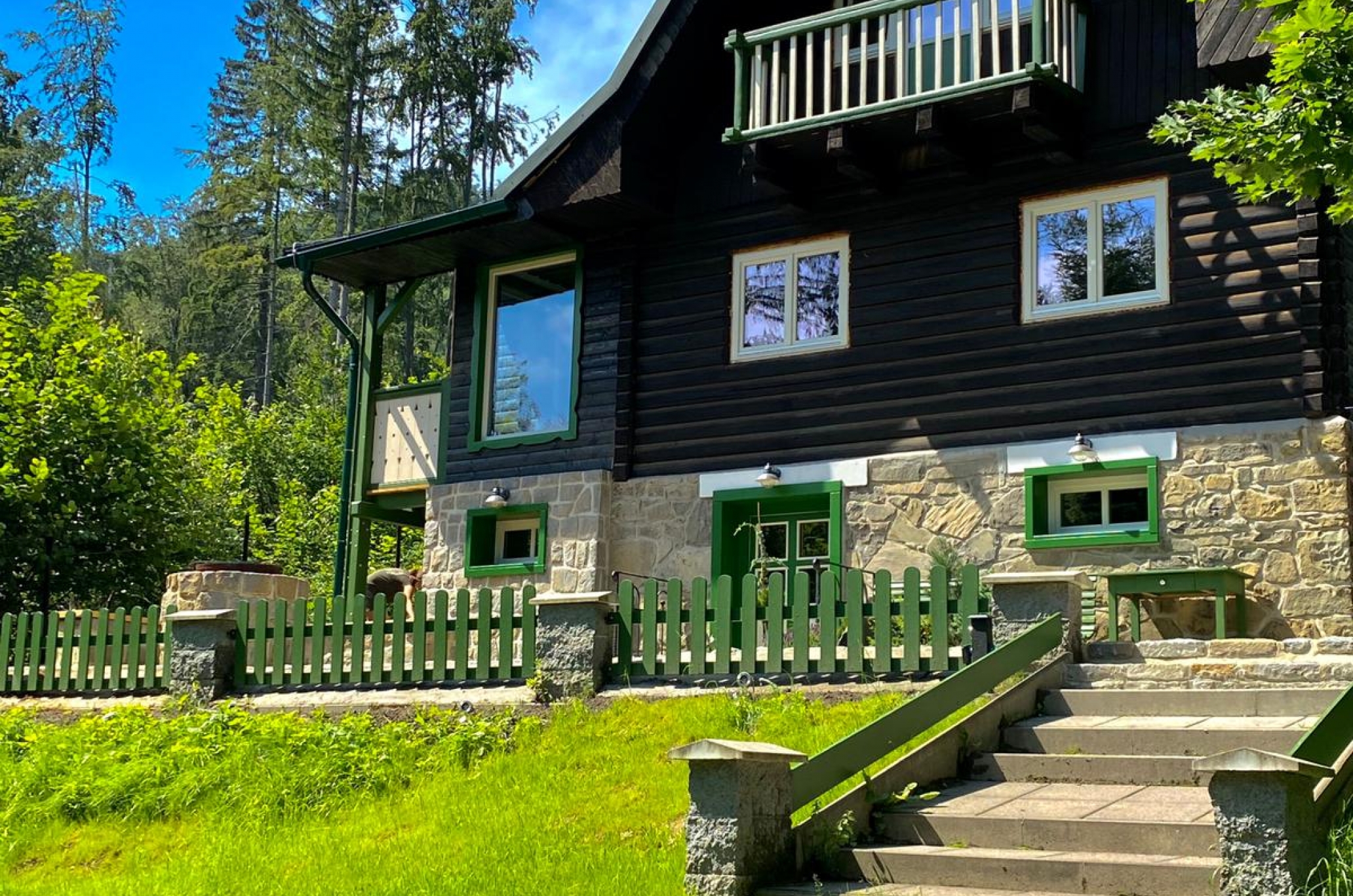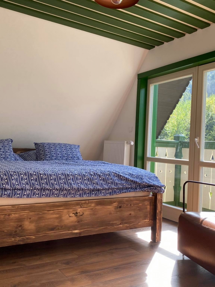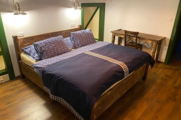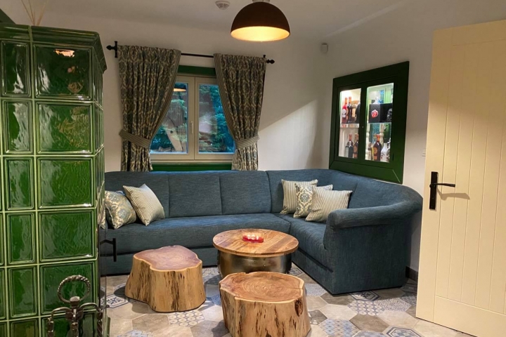 Этот домик расположен на солнечном холме возле деревни Пстружи, прямо у подножья Лысой горы. А называется Барсучьей норой, потому что неподалёку проходит барсучья тропа. Этот живописный дом непременно удивит Вас своим пространством в три этажа. Здесь с комфортом разместятся 6 человек с детьми. На втором этаже находится комната отдыха с красивейшей изразцовой печью, две спальни с двуспальными кроватями, два санузла, комната с душем и ванной, полностью оборудованная кухня (включая бытовую технику) и, конечно же, столовая с панорамными окнами и видом на природу. На третьем этаже расположены две большие двухместные комнаты с балконами. В цокольном этаже предусмотрена комната отдыха с финской баней, а во дворе Вас ждёт джакузи, где сможете расслабиться или весело провести время за бокалом любимого напитка. Для любителей барбекю в коттедже оборудована терраса с патио, со всеми принадлежностями.