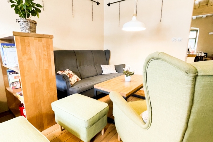Kap Café – семейное кафе в городе Каплице. Сказать, что это просто обычноe кафе, было бы неправдой. Помимо отборного кофе и отменных десертов собственного изготовления, здесь вы также найдёте отличное место для дискуссий, чтения, творчества, игр и простого безмятежного отдыха. Кроме этого, в кафе есть галерея, а на мансардном этаже расположен отель в стиле bed&breakfast с четырьмя уютными номерами, в которых есть всё необходимое для комфортного проживания: телевизор, интернет, холодильник и отдельная ванная комната. Вместимость одного номера – до 5 человек.