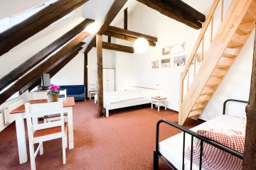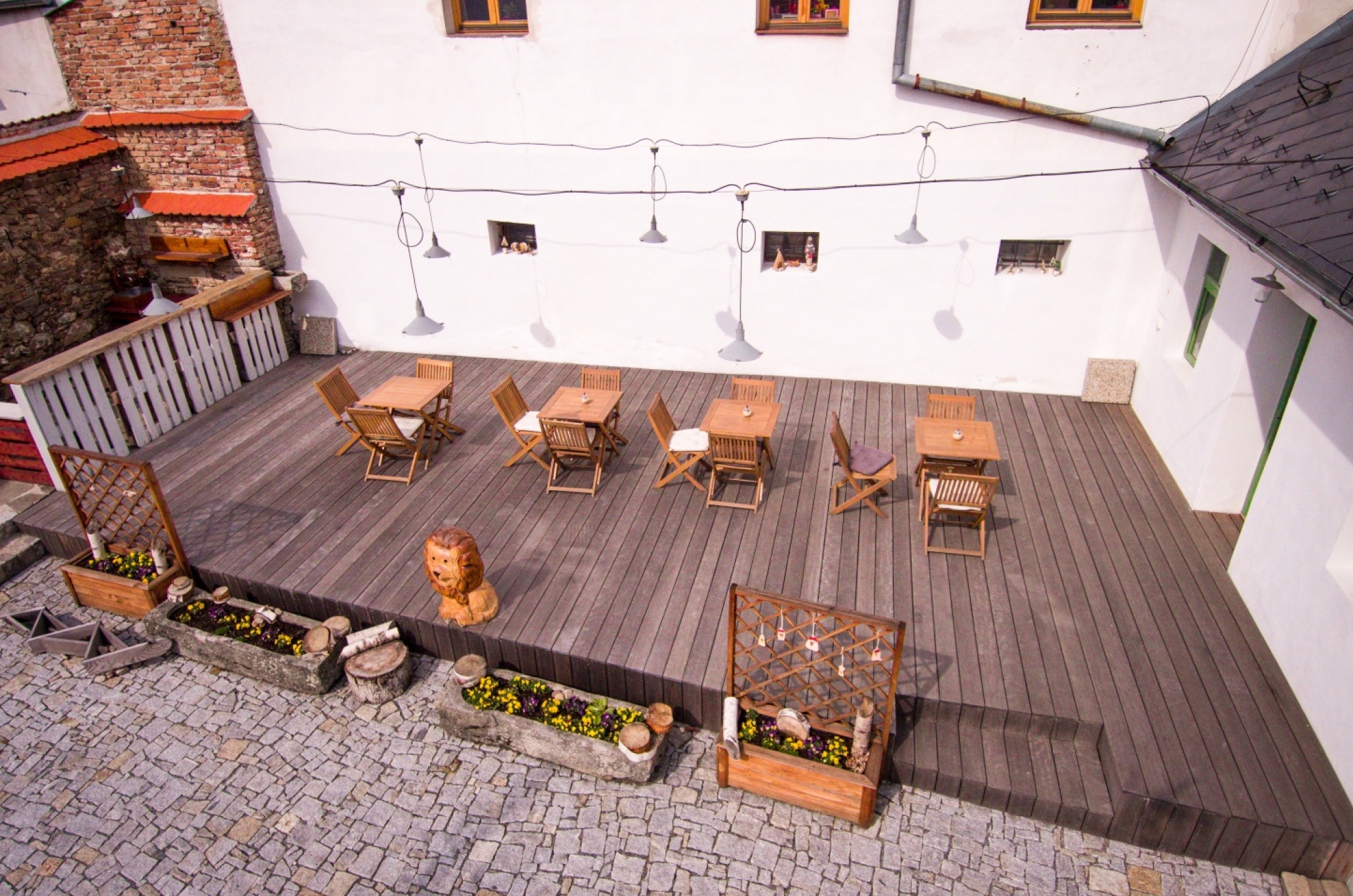 Оригинальная и популярная таверна Depo Český Krumlov была открыта апреле 2014 года. Здесь своя особая бесподобная атмосфера, живописный вид на обновлённый замковый парк вдоль реки Полечнице с фруктовым садом и игровой площадкой. Расстояние – 21 км.
