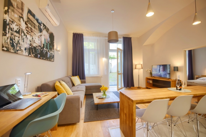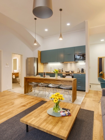 Если вы хотите остановиться в центре Праги, всего в нескольких шагах от Национального театра, то резиденция Karolina 01 – отличный вариант для этого. На выбор предлагается 20 просторных апартаментов с одной или двумя спальнями. Апартаменты с одной спальней пойдут как для двух взрослых с детьми, так и для четырёх взрослых гостей (если вы готовы воспользоваться гостиной для сна). Апартаменты с двумя спальнями имеют две отдельные ванные комнаты и предоставляют максимальное уединение для двух пар. Если вы планируете поездку вшестером, то, помимо спален, здесь можно разместиться ещё и на удобном диване-кровати в гостиной.