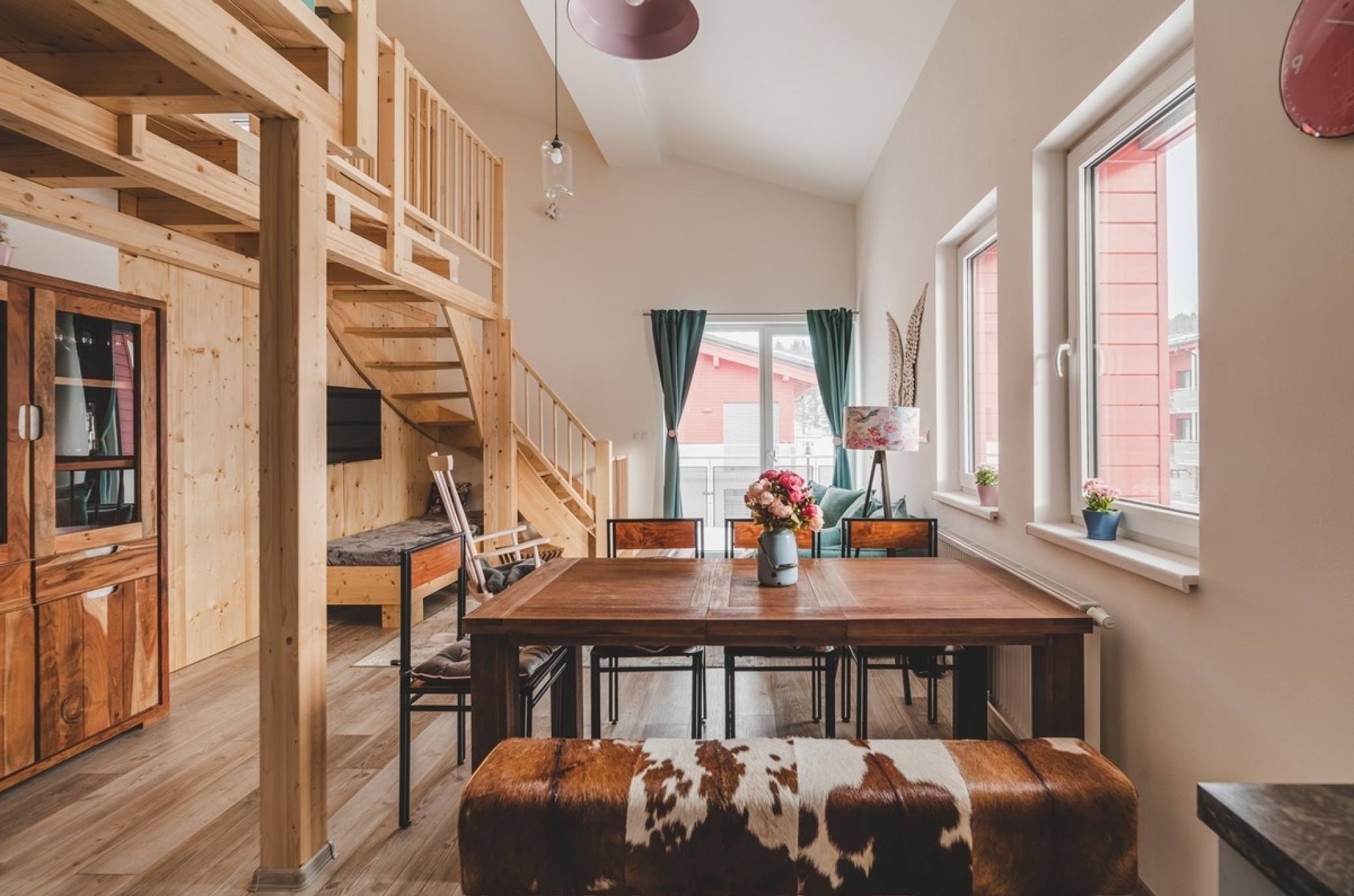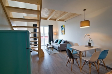 Озеро Липно из-за его протяжённости часто называют Южночешским морем. Именно здесь, в самом центре курортного посёлка Липно-над-Влтавой, находятся стильные апартаменты Korzo Lipno. Апарт-дом расположен в непосредственной близости от главной набережной с ресторанами, уютными кафе и магазинами, всего в 300 метрах от озера, в 500 метрах от горнолыжного курорта Крамолин и в 2 км от местной экотропы Stezka korunami stromů. Место отлично подходит для отдыха семей с детьми, любителей природы, катания на роликах, велосипедах и пешей туристики. В апартаментах есть полностью оборудованная кухня с посудомоечной машиной, духовкой, индукционной плитой, холодильником, чайником и вытяжкой, бесплатный Wi-Fi, а также меблированная терраса с видом на озеро Липно.