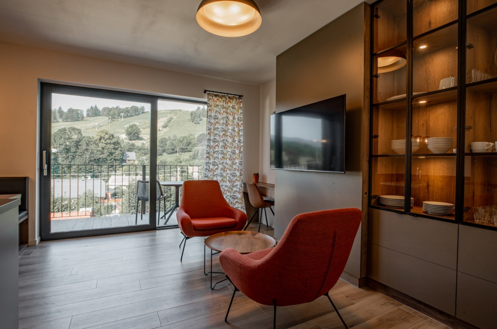 Стильные апартаменты LaBouda находятся в горах Есеники, недалеко от города Старе-Мнесто, в живописной части Кунчице. Если вы ищете место для отдыха, спорта или просто релакса, то этот апарт-дом отличный вариант. Проживание здесь прекрасно подходит как для семейного отпуска, так и небольших спа-выходных вдвоём. Зимой вы можете кататься на лыжах, а летом наслаждаться горным туризмом. Сами апартаменты оснащены всем необходимым, включая кухню и туалет. В апарт-доме есть также небольшой велнес-центр с сауной и купелью.