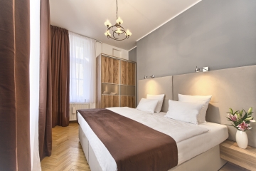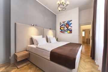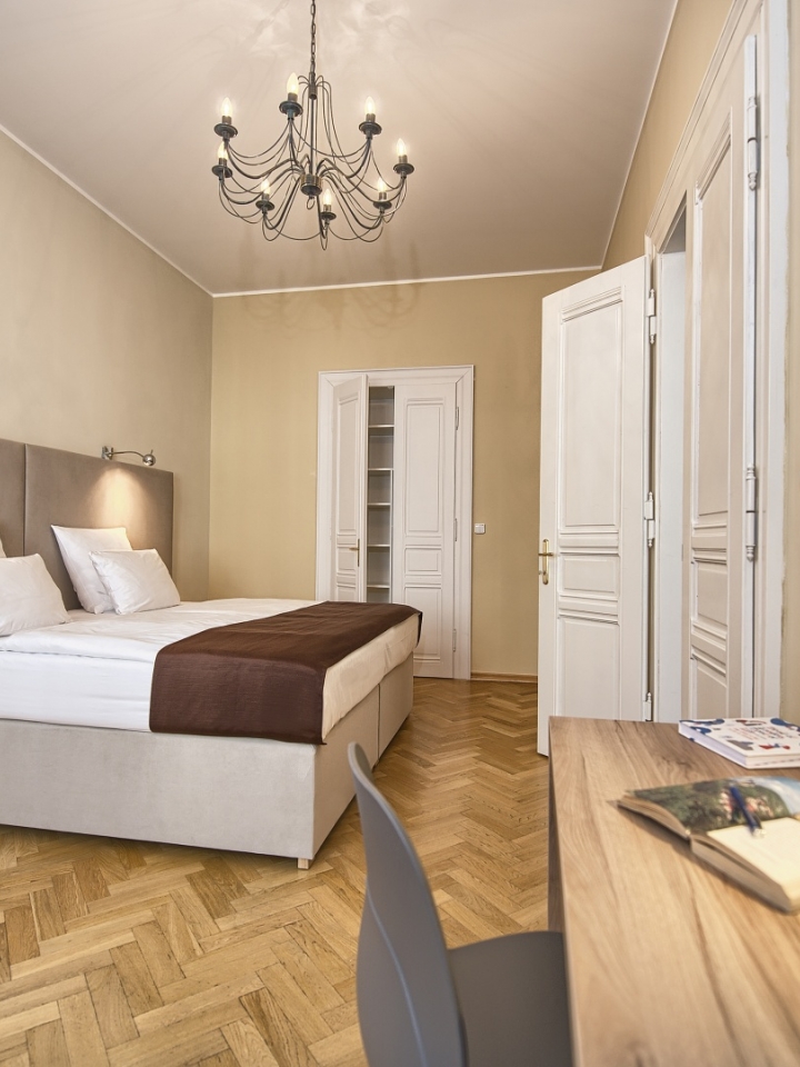 Улица Maiselovа (Майзелова) в пражском районе Старого города соединяет площадь Франца Кафки и улицу Бржегову. Своё название улица получила в честь богатого еврейского коммерсанта и банкира Мордехая Майзела, на средства которого в 1592 году была возведена Синагога Майзеля. Апартаменты Maiselová находятся рядом с ней – на четвёртом этаже недавно отреставрированного особняка с лифтом. Квартира включает в себя 3 со вкусом обставленные спальни, просторную гостиную с обеденной зоной, полностью оборудованную кухню и 2 ванных комнаты (одна спальня имеет собственную ванную комнату). В апартаментах с комфортом может разместиться и большая семья до 6 человек.
