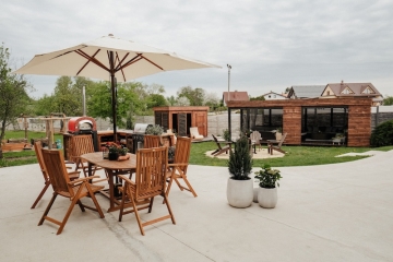 Загородный дом Orchard House идеально подходит для отдыха одной семьи, двух семей, а также для любителей путешествовать в одиночку. Стиль этого фарм-хауса является уникальным и нетипичным для Чехии. Как только за вами закроются ворота, вы сможете полностью погрузиться в уединение и тишину. Этого ожидают и от гостей дома – тишину, отсутствие шумных вечеринок и громкой музыки. В вашем полном распоряжении будут 2 просторные комнаты, 2 ванные комнаты и большая гостиная с диваном и полностью оборудованной современной кухней. Если вам нравится ужинать на открытом воздухе, вы непременно оцените террасу с отличной площадкой для барбекю и мини-печью для пиццы. Прекрасным дополнением вашего отдыха станет небольшая велнес-зона с финской сауной и джакузи, а вечер приятно скрасит уютная зона для отдыха с местом для костра.
