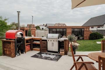 Luxusní barbecue kout doplněný luxusní pizza pecí je příjemné zpestření.