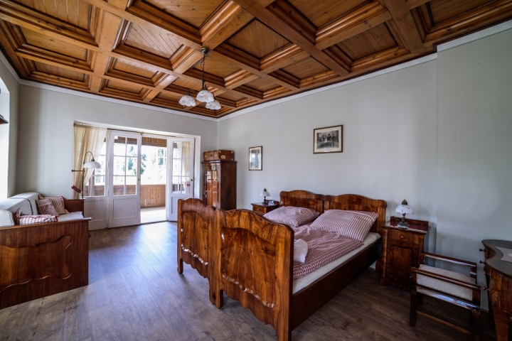 Samotný pension je budova z roku 1912, kterou si postavil tehdejší starosta Dominik Neumann původně jako nízkopodlažní dřevozpracovatelskou dílnu. Nicméně posléze byla přistavěna jednotlivá patra a pan starosta v domě žil s celou svou rodinou. Dům v roce 1933 vyhořel, kdy zůstalo prakticky jen zděné jádro. Veškeré dřevěné prvky tedy musely být obnoveny a od té doby zůstaly zachovány v autentické podobě dodnes.
