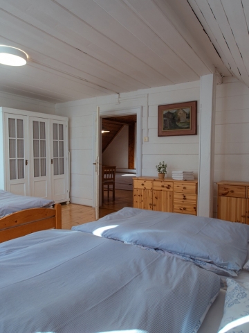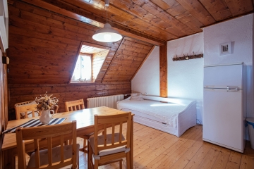Пансионат Statek u Rajtrů расположен в тихом месте туристического горнолыжного курорта Бедржихов, здания которого покорят Вас своей атмосферой. Подход к дому ведет через красивую кленовую аллею, которая пересекает туристическую пешеходную тропу. Всего в 200м от гостевого дома находятся лыжные трассы и начальная точка Йизерской трассы - Малиник. Пансионат состоит из двух основных домов: Рубенки и Стодолы и двух дополнительных, которые находятся в конце двора и располагают просторной зоной отдыха со всеми необходимыми принадлежностями для барбекю. В Рубенке есть два вида апартаментов (2+2 и 4+1) и так называемая кукольная комната. Здесь находится только самое необходимое: холодильник и раковина, санузел расположен наверху, а душ - на первом этаже. В Стодоле представлены типичные гостиничные номера в горах. На первом этаже находятся апартаменты, рассчитанные на 5-6 человек, на втором этаже - двухместный, трехместный номер и две отдельные комнаты на 2-4 человека. Каждый номер располагает собственной ванной комнатой и санузлом, а в общих зонах есть кухня и обеденные столы. Также в общих комнатах пансионата предусмотрены бытовые помещения для хранения спортивного инвентаря и велосипедов, игровая комната и сауна. Парковка находится рядом с домом.
