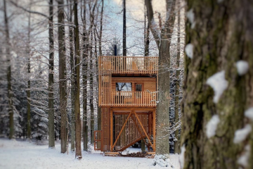 Обратно на деревья. Весьма необычное проживание в домиках Stromovny вернёт вас туда, где всё когда-то началось. Домики находятся недалеко от города Чешские Будейовице, возле деревушки Бржегов. Больше о месторасположении мы сейчас не скажем, пусть это пока останется нашей маленькой лесной тайной. Точные координаты будут направлены вам уже после бронирования. Что вас здесь ждёт? Большая, удобная кровать с постельными принадлежностями, ванная комната, химический туалет, раковина с проточной водой и душ. Вода здесь настоящая ценность: её запас в домике ограничен и она уличной температуры. Тёплую и романтическую атмосферу создаёт печка-камин, где можно приготовить чай или кофе. Вся необходимая кухонная утварь в домике уже есть. Доминанта интерьера – библиотека. Начатую книгу можно спокойно взять с собой домой, а после прочтения отправить её обратно почтой. Розеток в домике нет, но зарядить телефон или включить свет можно. Насладиться прекрасными видами вы сможете с террасы, где есть уютная зона для отдыха и всё необходимое для барбекю. А еда? Винотека и корзины с продуктами для пикника будут подготовлены к вашему приезду. Ну и, конечно же, главное – наслаждаться романтической атмосферой Stromovny лучше всего вдвоём.