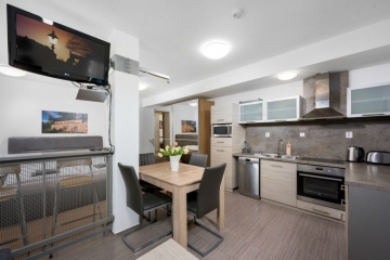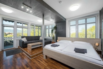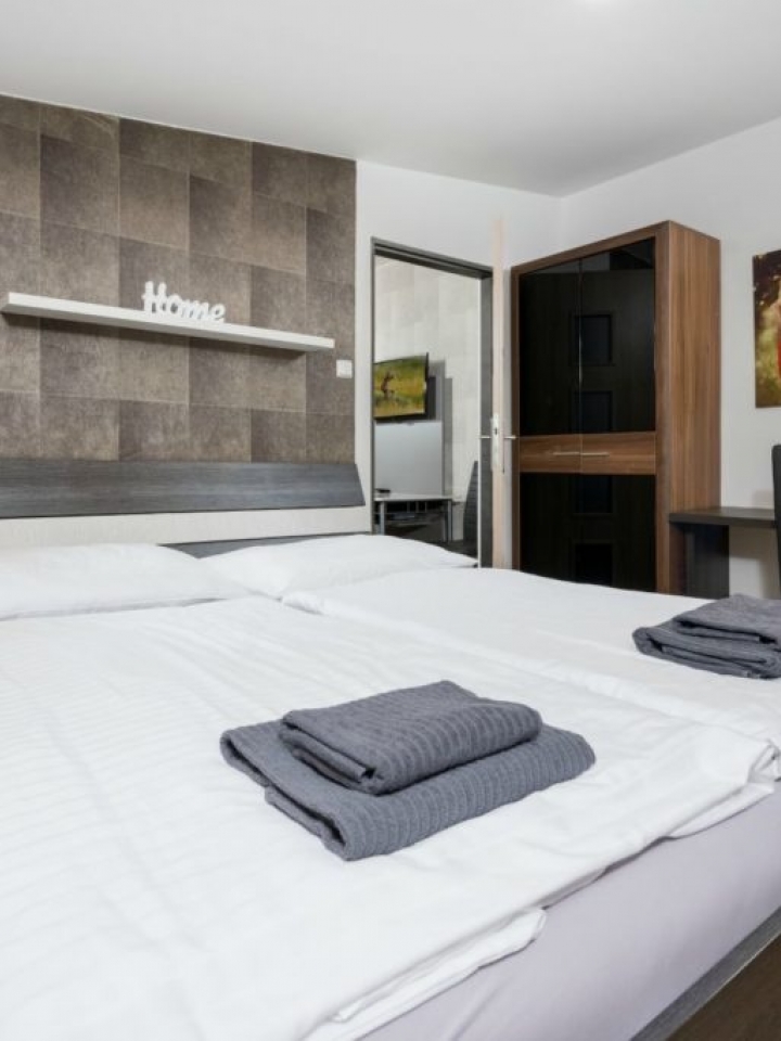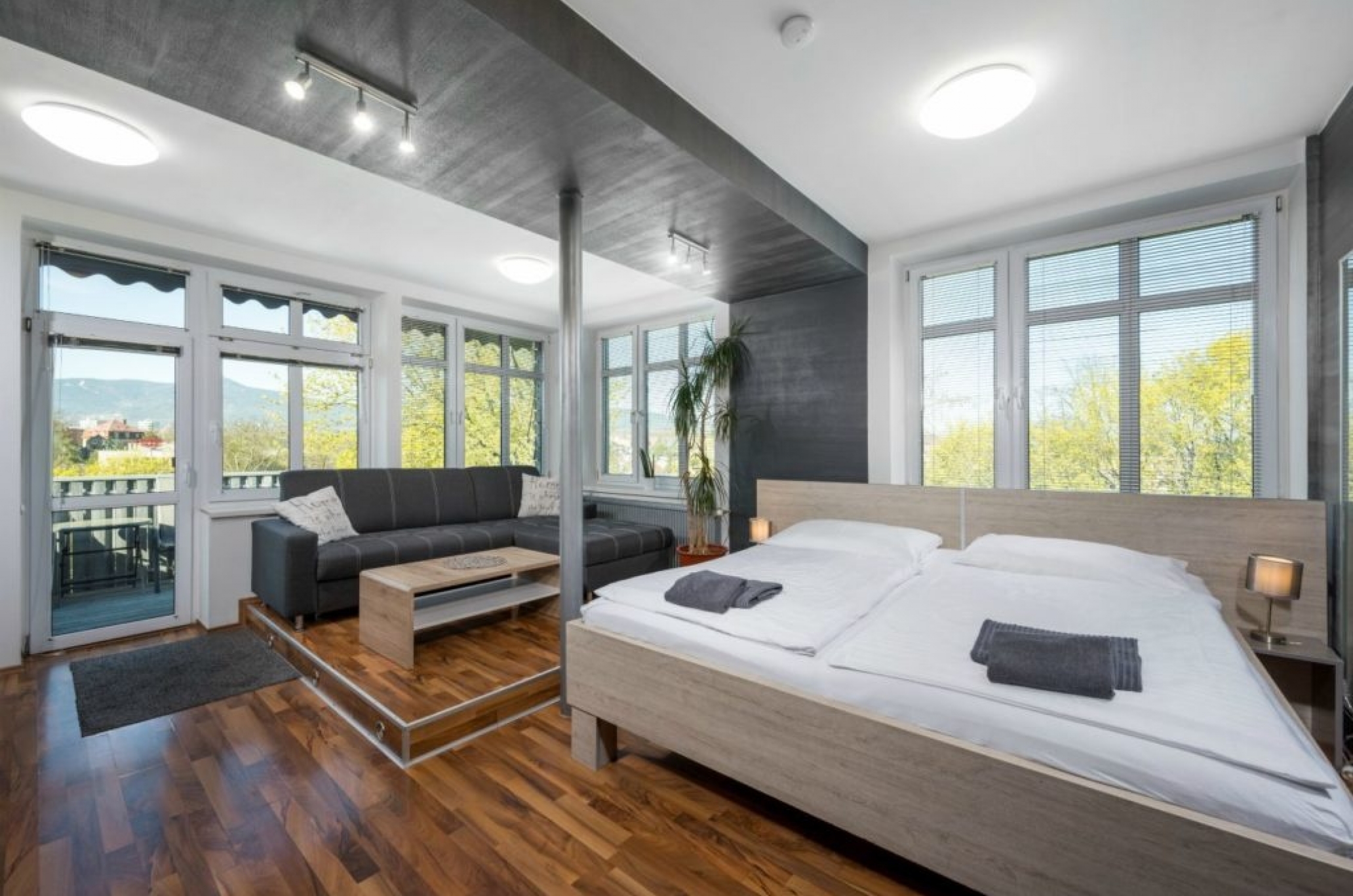 Проживать в эко-парке, не покидая центра города Либерец? Почему бы и нет. SunGarden предлагает отремонтированные, современные многокомнатные апартаменты в красивой тихой части города Либерец, окружённой зеленью и собственным эко-парком площадью 10 000 кв. м. В апарт-доме можно разместиться в одних из 9 апартаментов, рассчитанных на 4-8 человек. В каждом номере имеется ванная комната, уборная, сейф и мини-кухня с холодильником. Если вы любите спорт, вас определённо порадует возможность арендовать тренажёр и заниматься прямо в номере.