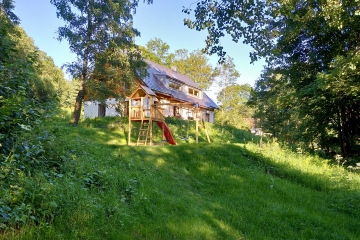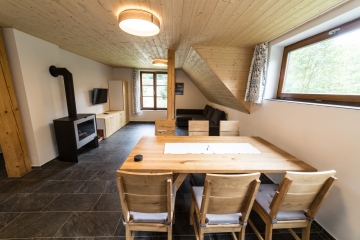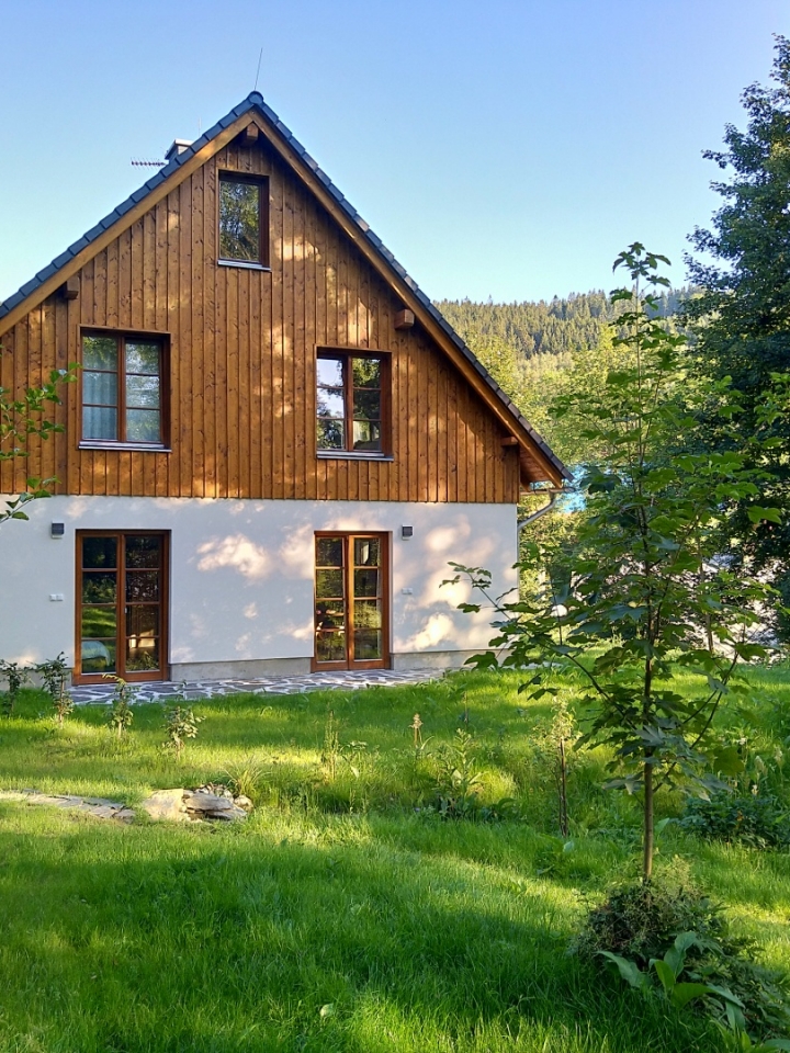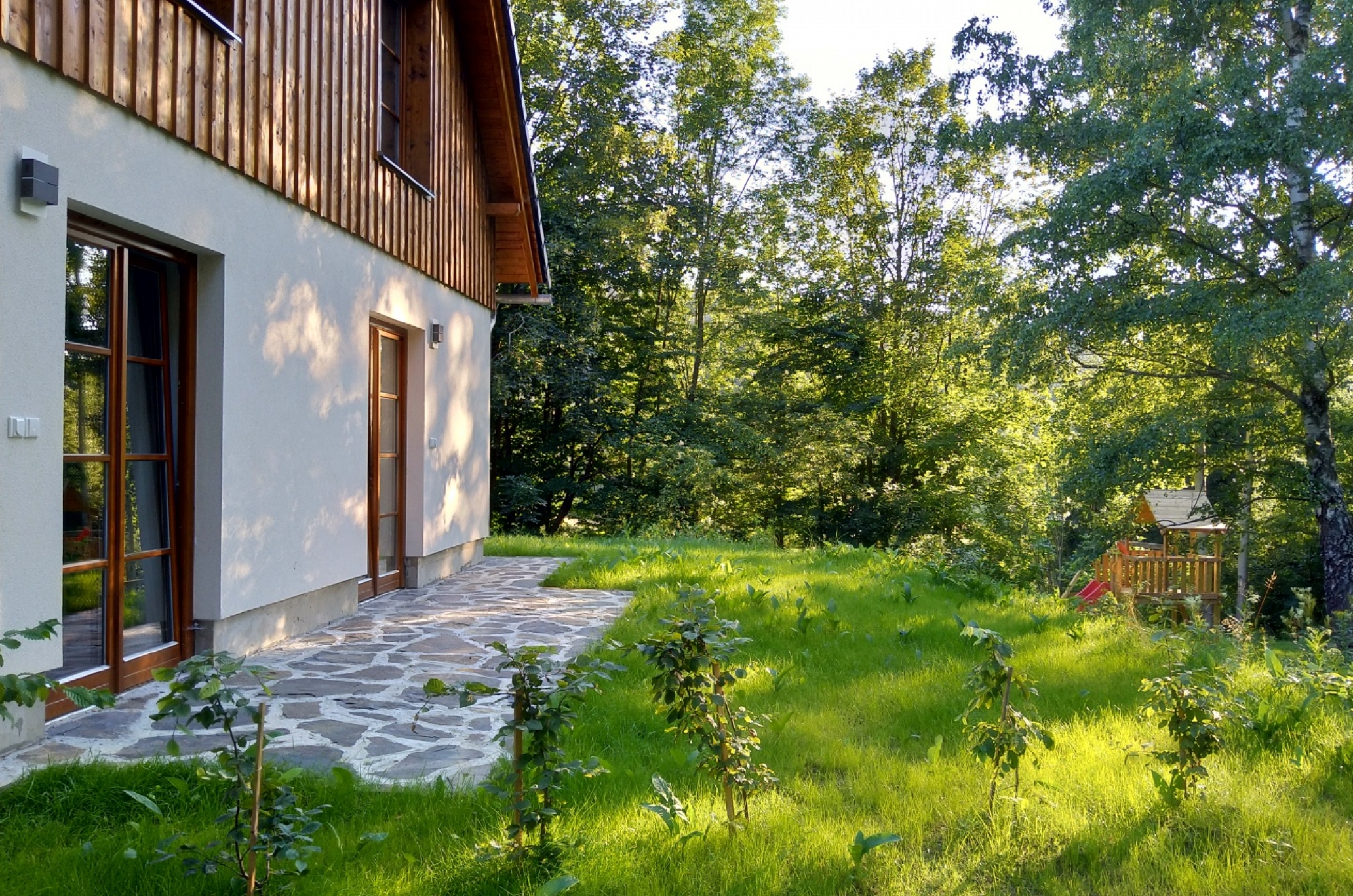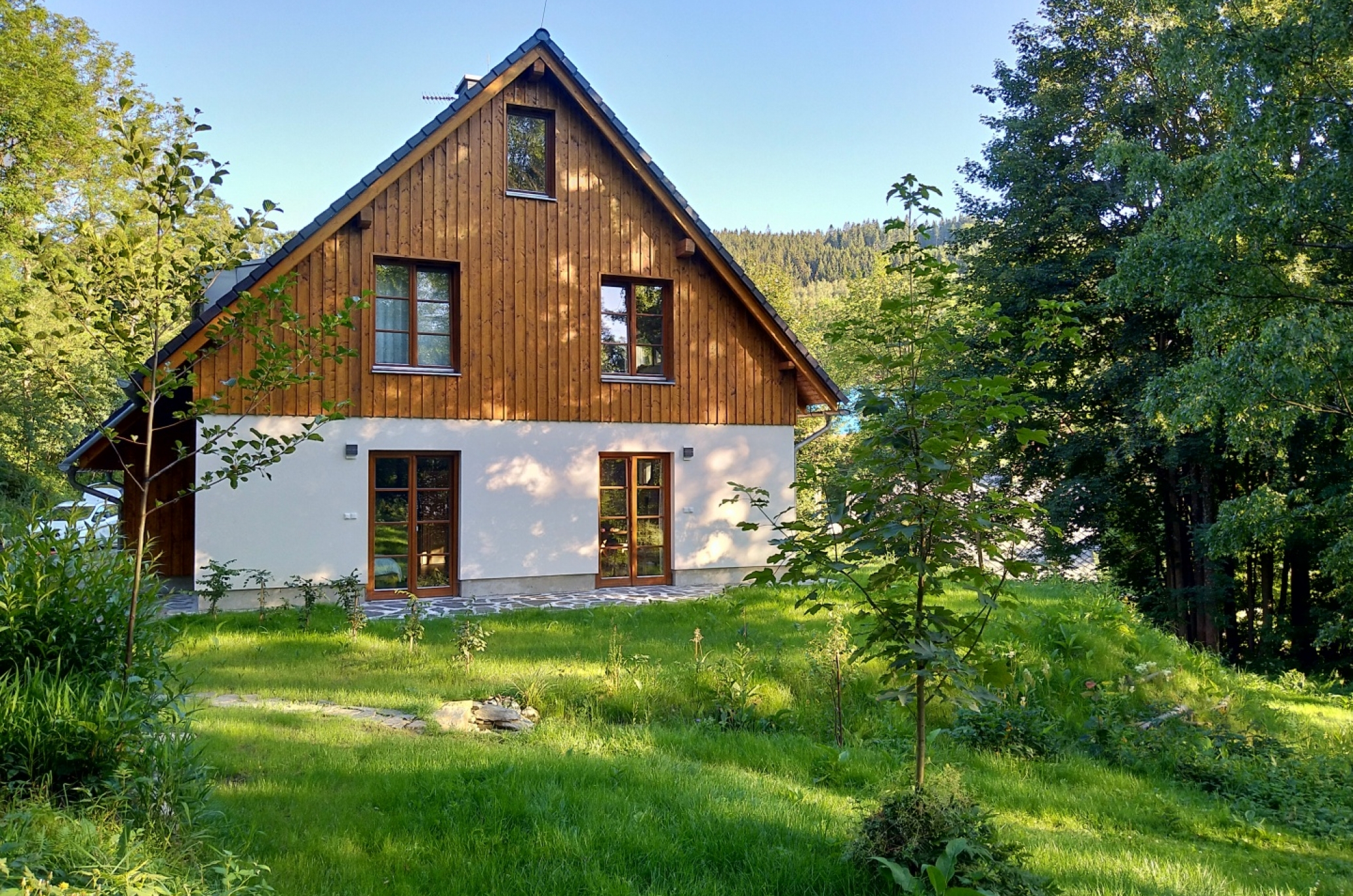 Загородный коттедж U Staré hájenky («Старый охотничий домик») укромно расположился у самого леса, в дикой природе Пржемысловской седловины, окрестностях национального природного парка Есеники. Дом разделён на 4 одинаковых по площади апартамента (54 кв. м) с общей комнатой для хранения лыж и велосипедов. Два апартамента с отдельными выходами на террасу находятся на первом этаже. В одном из них имеется одна спальня, гостиная с кухней и ванная комната. В другом, более подходящем для семейного отдыха с детьми, есть две спальни, отдельная кухня и ванная комната. На втором этаже находятся ещё два апартамента. Каждый из них имеет одну спальню, гостиную с кухней и ванную комнату. Просторный практичный интерьер каждого апартамента предназначен для размещения 2-5 человек. Здание отапливается полами с подогревом, во всех апартаментах есть камин. Если вы ищете комфортное проживание в спокойном и тихом месте с возможностью активного отдыха на природе (лыжи, пешие прогулки, велотуризм), то вам понравится этот уютный коттедж в окружении заповедной чешской природы.