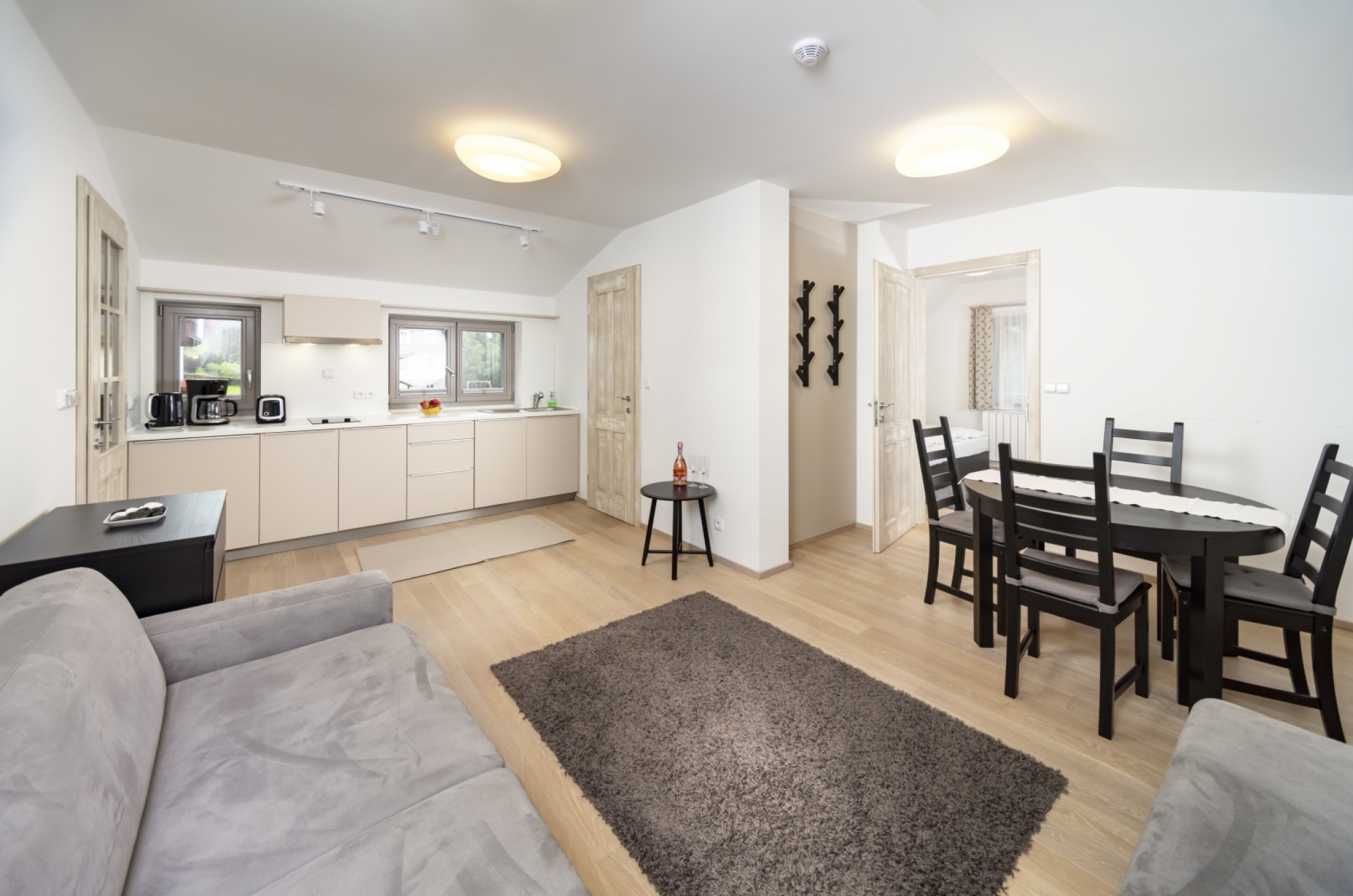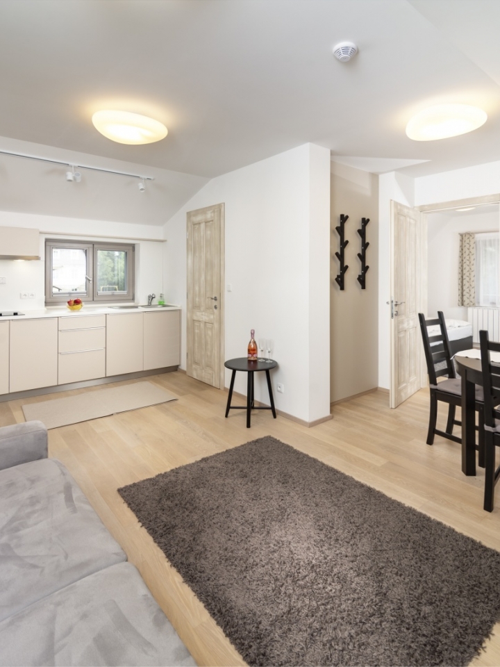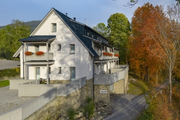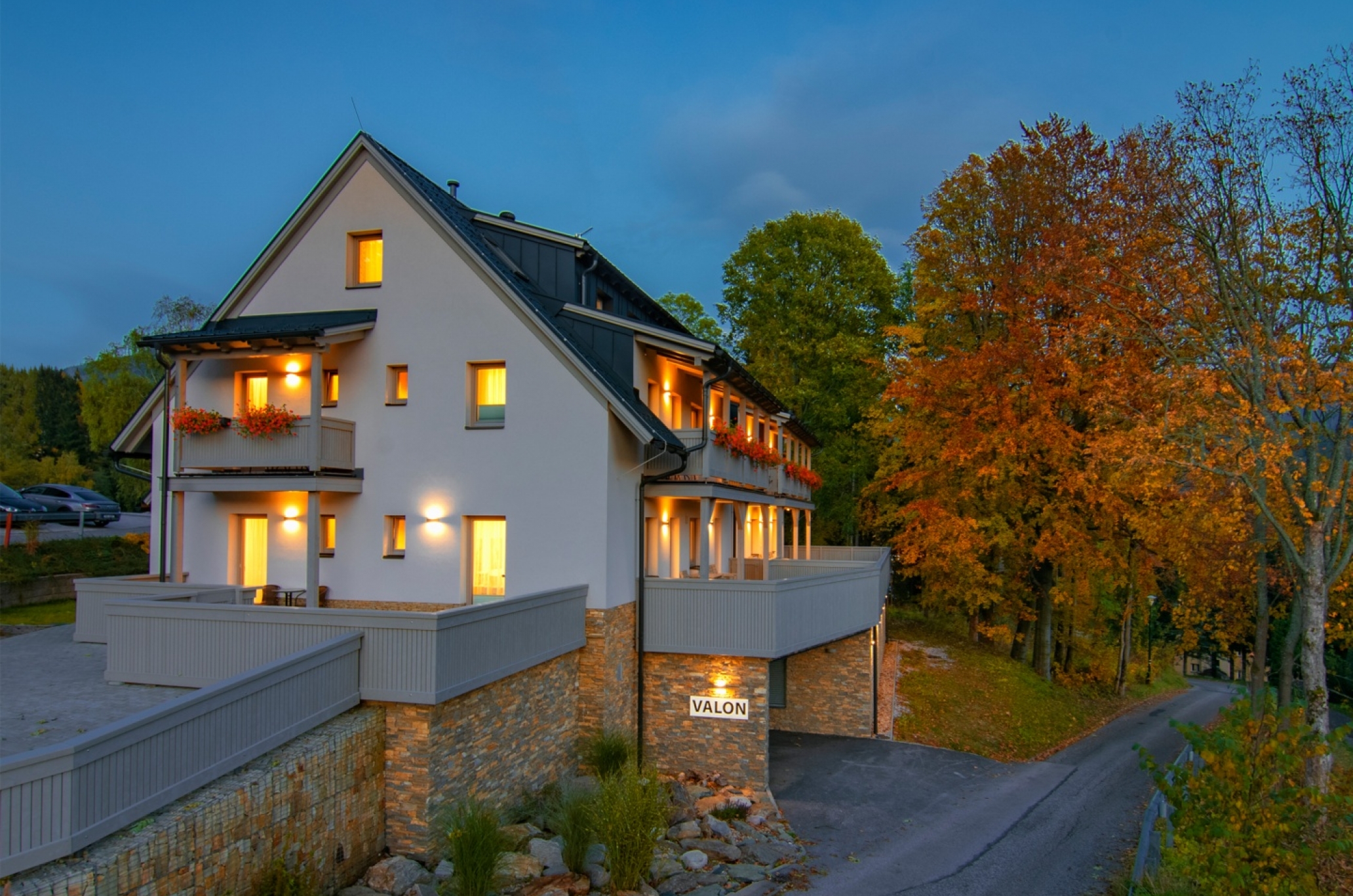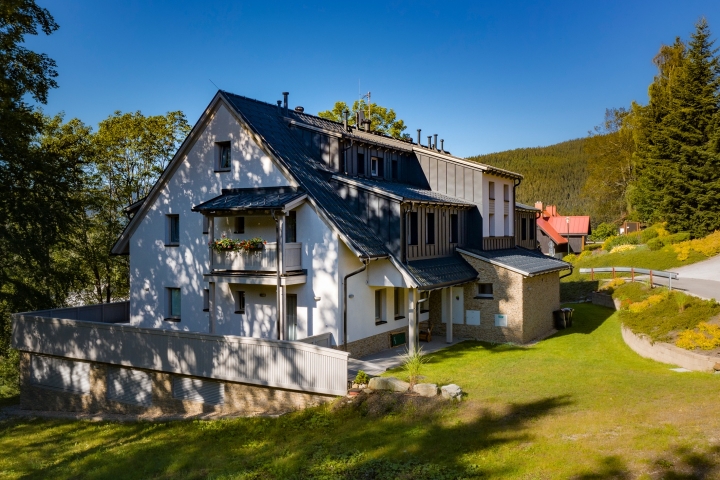 Стильный горный гостевой дом Valon – это отличное проживание в семейных апартаментах, доступных для гостей в течение всего года. Дом расположен в тихой части Шпиндлерув-Млын, при этом всего в нескольких минутах ходьбы от центра города и горнолыжных спусков Громовка и Медведин. Современно оборудованные апартаменты прекрасно подойдут как для пар, которые любят тихий и комфортный отдых, так и для семей с детьми . Все апартаменты состоят из гостиной, одной или двух спален, оборудованной мини-кухни и ванной комнаты с туалетом. В большинстве из них есть также балкон или терраса с красивым видом на горы. Прямо в здании находится гараж для парковки.