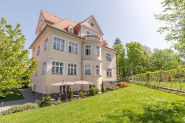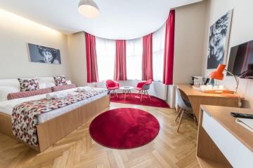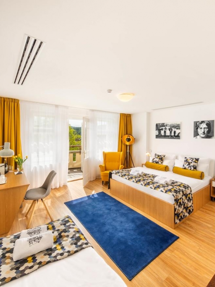 Beatika – премиальное размещение в Чешском Крумлове. Первореспубликанская вилла была построена в 1932 году, а в 2013 году была перепроектирована и полностью отреставрирована. Дом расположен на возвышенности над старой частью города, в тихом жилом квартале, возле парка, и всего в 8 минутах ходьбы от центральной площади города – площади Согласия. С любой точки виллы открывается потрясающий вид на старый город, замок и его окрестности. Возле дома расположен небольшой сад с террасой и перголой, где можно отлично посидеть и отдохнуть. Для гостей предлагается размещение в 10 просторных номерах, оснащённых кондиционером и обставленных по индивидуальному дизайну в стиле популярных музыкальных звёзд. Все номера имеют отдельную ванную комнату с ванной или душевой кабиной и туалетом. В каждом из них есть также мини-бар, спутниковое телевидение, сейф и кофеварка Nespresso.