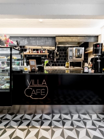 Внизу находится Villa Café – нестандартное кафе с необычным дизайном, где подаётся не только отличный кофе Tonino Lamborghini, домашние десерты и превосходный завтрак. Просторный сад с террасой и перголой – идеальное место для отдыха, где можно легко потерять счёт времени и забыть, что вилла находится всего в нескольких минутах ходьбы от центра оживлённого туристического города.