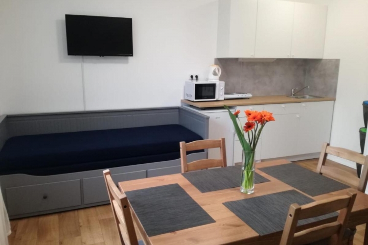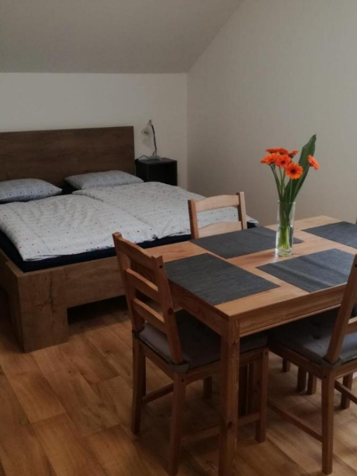 Apartmány jsou vhodné pro příjemný pobyt různých skupin návštěvníků. Nachází se v prvním patře nové dřevostavby a mají samostatný vchod, kuchyňku, vlastní koupelnu a výhled na pastviny s koňmi a nejvyšší horu Jizerek – Smrk. V každém apartmánu jsou celkem čtyři lůžka – jedna velká manželská postel a jedna rozkládací postel. Apartmán má plně vybavenou kuchyňku a oddělenou koupelnu s WC. Parkovat můžete přímo před vchodem do apartmánu, kola nebo lyže si uschováte v uzamykatelném zahradním domku. Apartmány jsou plně vybavené vším potřebným pro váš příjemný pobyt. Rádi vám zapůjčí i hračky pro děti, které se mohou zabavit i na zahradě. Dospělí si pak mohou odpočinout při posezení na terase nebo grilování.