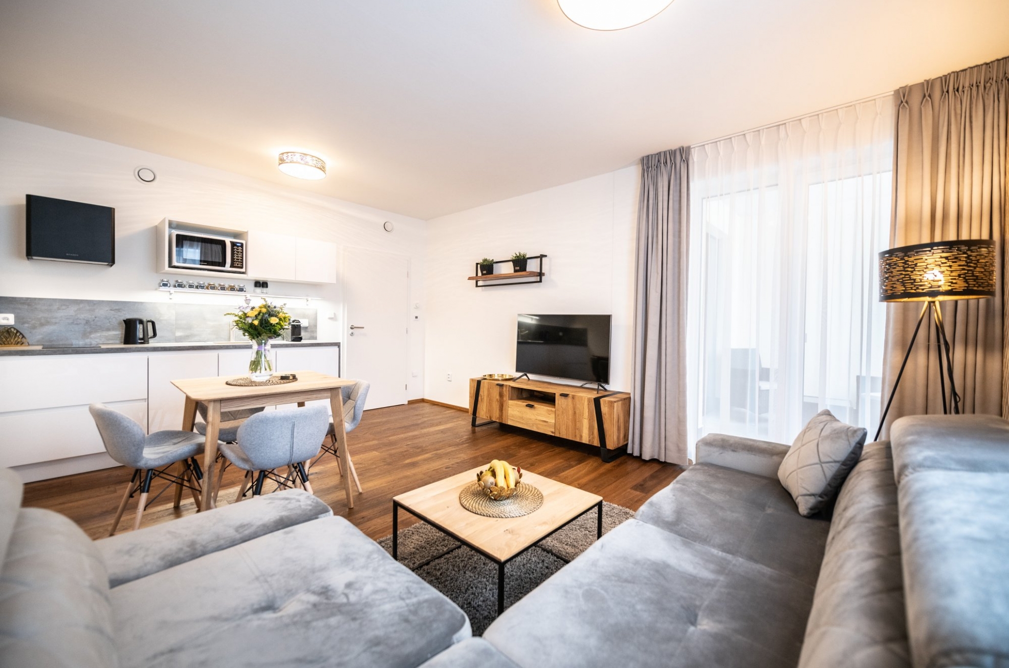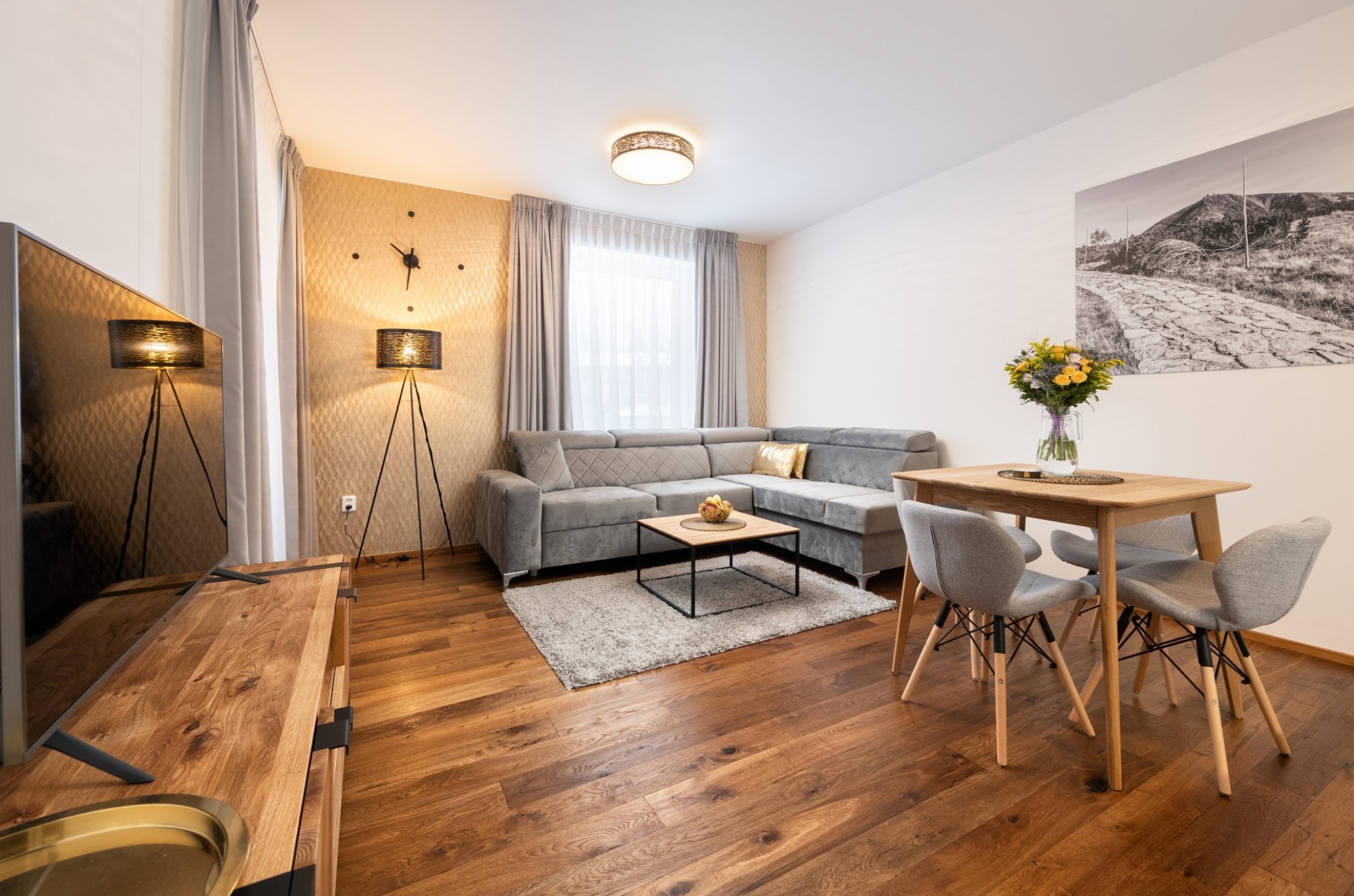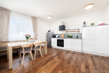 Užijte si dechberoucí krásy Krkonoš přímo u veletoku Labe. Dva apartmány (2+kk a 3+kk) Horská ve Vrchlabí vám poskytnou perfektní zázemí pro dovolenou ve zdejší přírodě. Místo je luxusní svou polohou a výjimečnou kombinaci městského zázemí v kouzelném podhůří Krkonoš. Je téměř na dosah všem klenotům, které může tato lokalita nabídnout. Autem 3 minuty do lyžařského střediska Herlíkovice / Bubákov a 15 minut do Špindlerova Mlýna. A pěšky 10 minut do romantického centra Vrchlabí. Areál domu poskytuje komfortní zázemí, zahrnující dostatečný počet zastřešených parkovacích míst, vlastní wellness či golfový simulátor s možností vyzkoušet si také fotbal a fotbalgolf v teple a suchu. K dispozici máte sklepní kóje s držáky na kola a lyže (s vyhřívanými držáky na lyžařské a snowboardové boty).