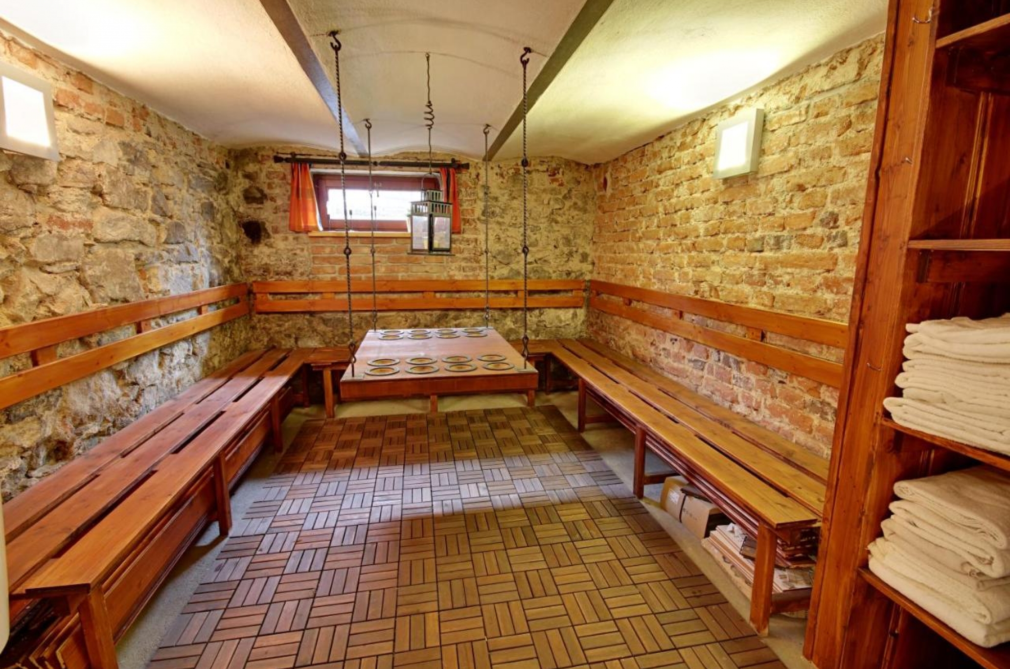 Možnnost využití velké finské sauny i s ochlazovacím bazénkem.