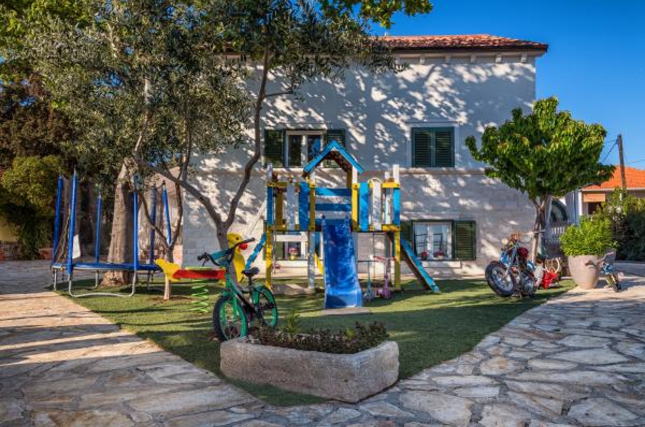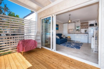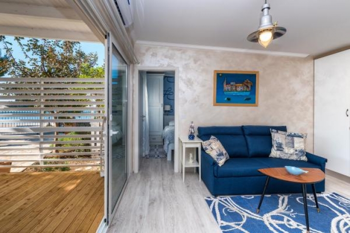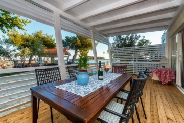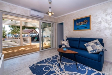 Apartmány leží přímo u písečné pláže. Do centra města se dostanete za pár minut. Všechny apartmány jsou klimatizované a mají bezplatné Wi-Fi, LCD TV. Parkování je ve dvoře, který je oplocený a speciálně upravený pro děti (trampolína, skluzavka, houpačka, dětský domov, stůl s lego kostkami ...) V ceně pronájmu jsou zahrnuty všechny kuchyňské potřeby, ručníky a ložní prádlo, stejně jako pronájem lehátka na pláži.