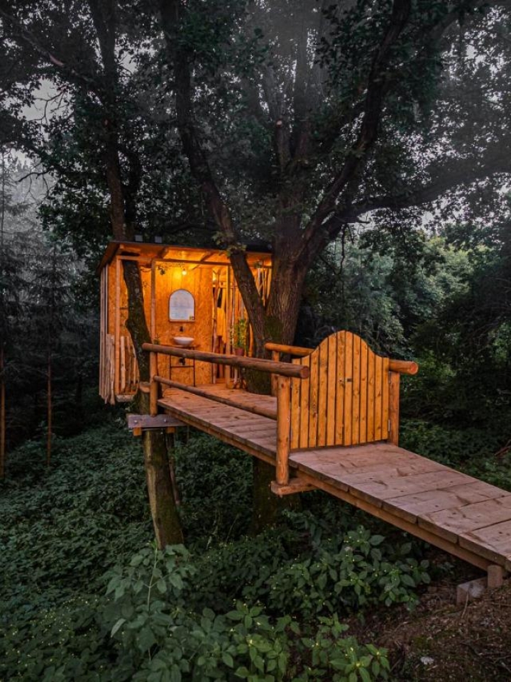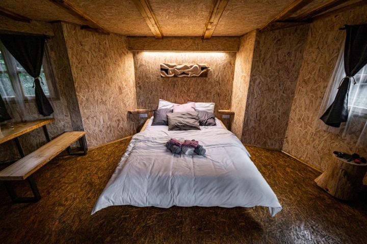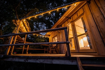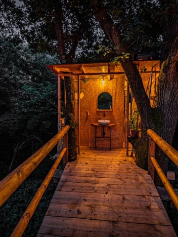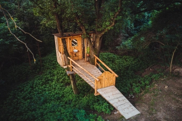 Postaven s láskou v korunách stromů. To je příběh tohohle sympatického baráčku. Baráček na stromě se ukrývá v jižních Čechách. Pár desítek metrů od klidné vodní hladiny Orlické přehrady, ale hlavně - v lese. Šumícím a tajuplném. Baráček vám jistě pomůže dobít energii. Uvnitř na vás čeká měkoučká dvoulůžková postel a dvě samostatná lůžka, teplo pak zajistí praskající krbová kamna. Nechybí tu plynový vařič, konvice a nádobí. Jídelní stůl najdete jak uvnitř, tak na terase a kousek vedle baráčku i ohniště s již připraveným dřívím. A nebojte, do sprchového koutu, k umyvadlu a na WC to je jen pár kroků a elektřina taky jede.