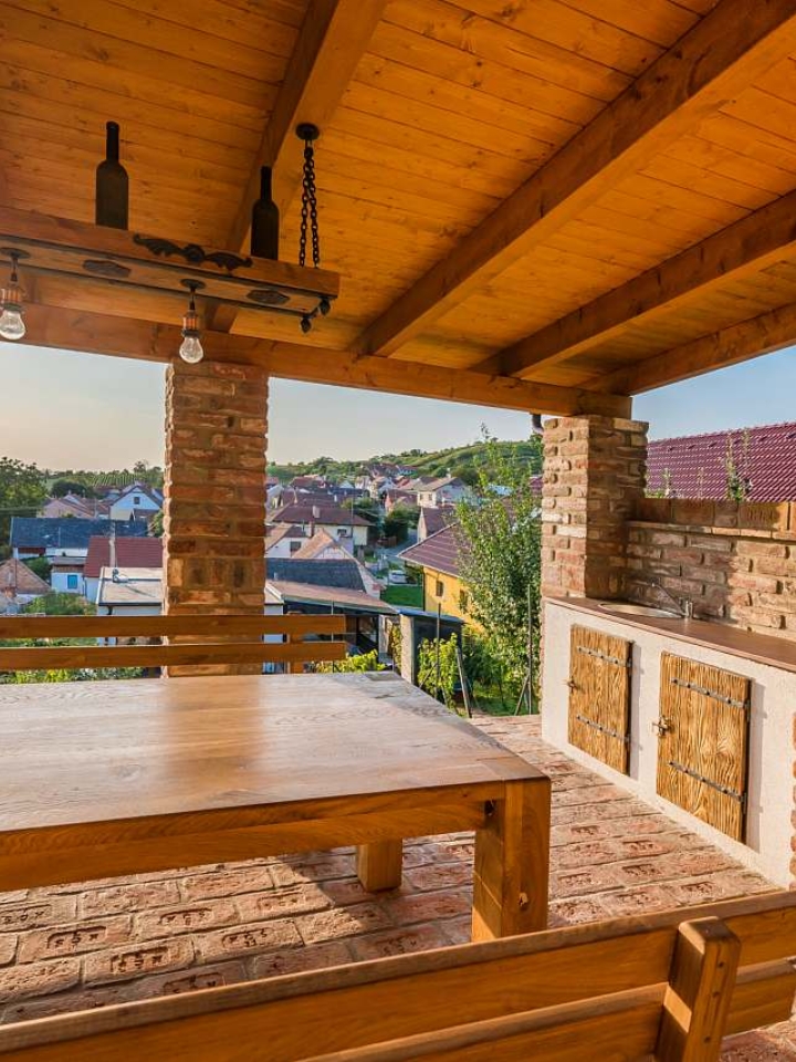 Dominantou naší Búdy je cihlová terasa, ze které je jedinečný výhled do Mutěnic. K dispozici je také udírna, kde si můžete vyudit maso z vyhlášené sousední masny, kterou najdete v Hovoranech.