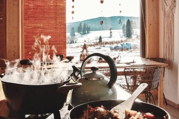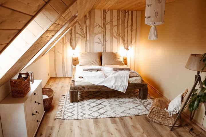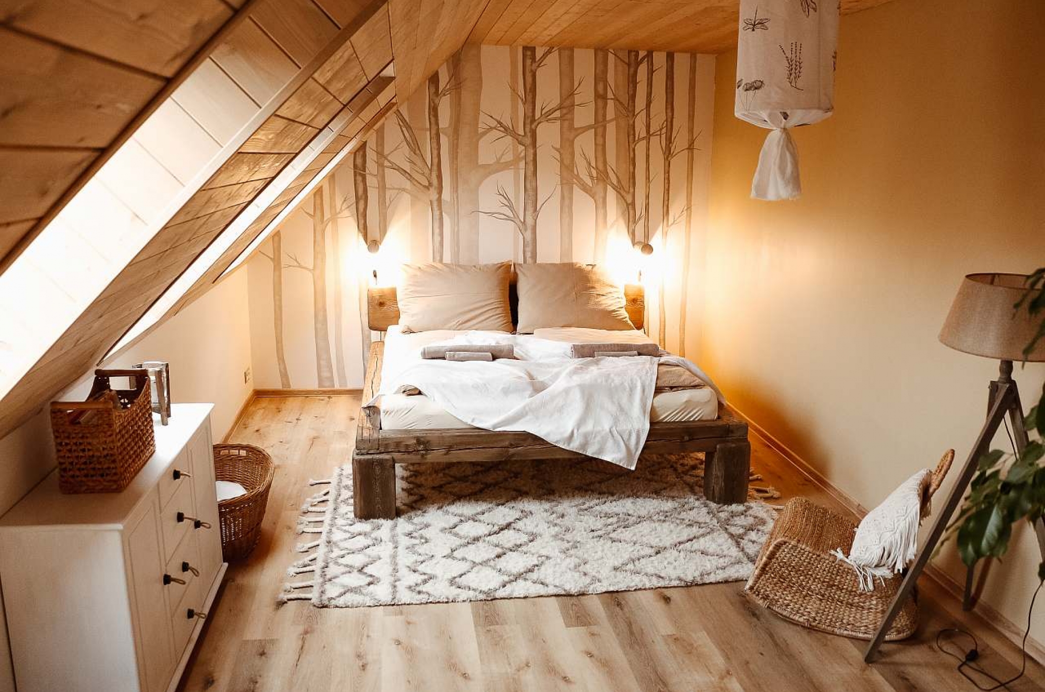 Chalet Astré se nachází v Orlických horách, na samotě u řeky Divoké Orlice v malebné horské vesničce Orlické Záhoří. Najdete tu božský klid, krásné východy i západy slunce a prostor nadechnout se absolutní svobody. V přízemí se nachází velká kuchyň s ostrůvkem pro společné vaření a prostorná společenská místnost s otevřeným výhledem do Orlických hor. Pohodlný gauč, spousta sedacích pufů i krb vám zajistí příjemné útočiště s přáteli i v deštivém počasí.