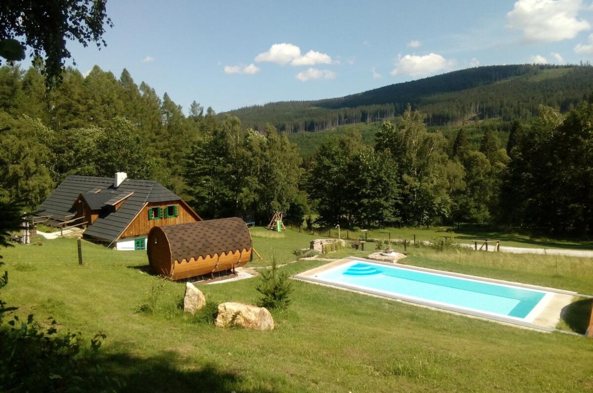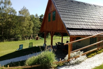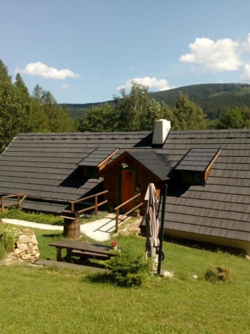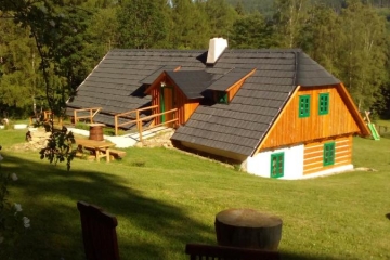 Mít chalupu na Šumavě je sen, a my vám ho pomůžeme uskutečnit. Tuhle polo roubenou chalupu najdete na samotě uprostřed překrásné přírody nedaleko Kašperských Hor. Chalupa je postavena po vzoru starého šumavského stavení, přesto nabízí veškerý komfort a pohodlí dnešní doby. Objekt je bezbariérový a je rozdělen do 4 apartmánů. V každém najdete vlastní sociální zařízení a plně vybavenou kuchyňku. V chalupě je k dispozici společenská místnost, která pojme až 20 lidí. Je tu taky malá herna, televize, domácí kino, mnoho filmů pro děti i dospělé, stolní fotbálek, společenské hry. Co se týče venkovního vyžití, poslouží zastřešená terasa, venkovní ohniště, zahradní gril, hřiště s fotbalovými brankami a další sportovní náčiní. Pro děti je tu houpačka, klouzačka, trampolína, pískoviště, zapuštěný přelivový bazén se slanou vodou a zastřešením, venkovní originální saunu ve tvaru sudu. Můžeme s pýchou říct, že jsme pro vás našli jeden z nejhezčích penzionů na Šumavě.