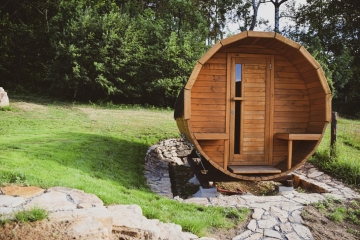 Možnost posezení ve vinném sklípku, k dispozici je palouk o velikosti 3000 m2, sudová sauna vonící dřevem, přelivový bazén se stylovým zastřešením.
