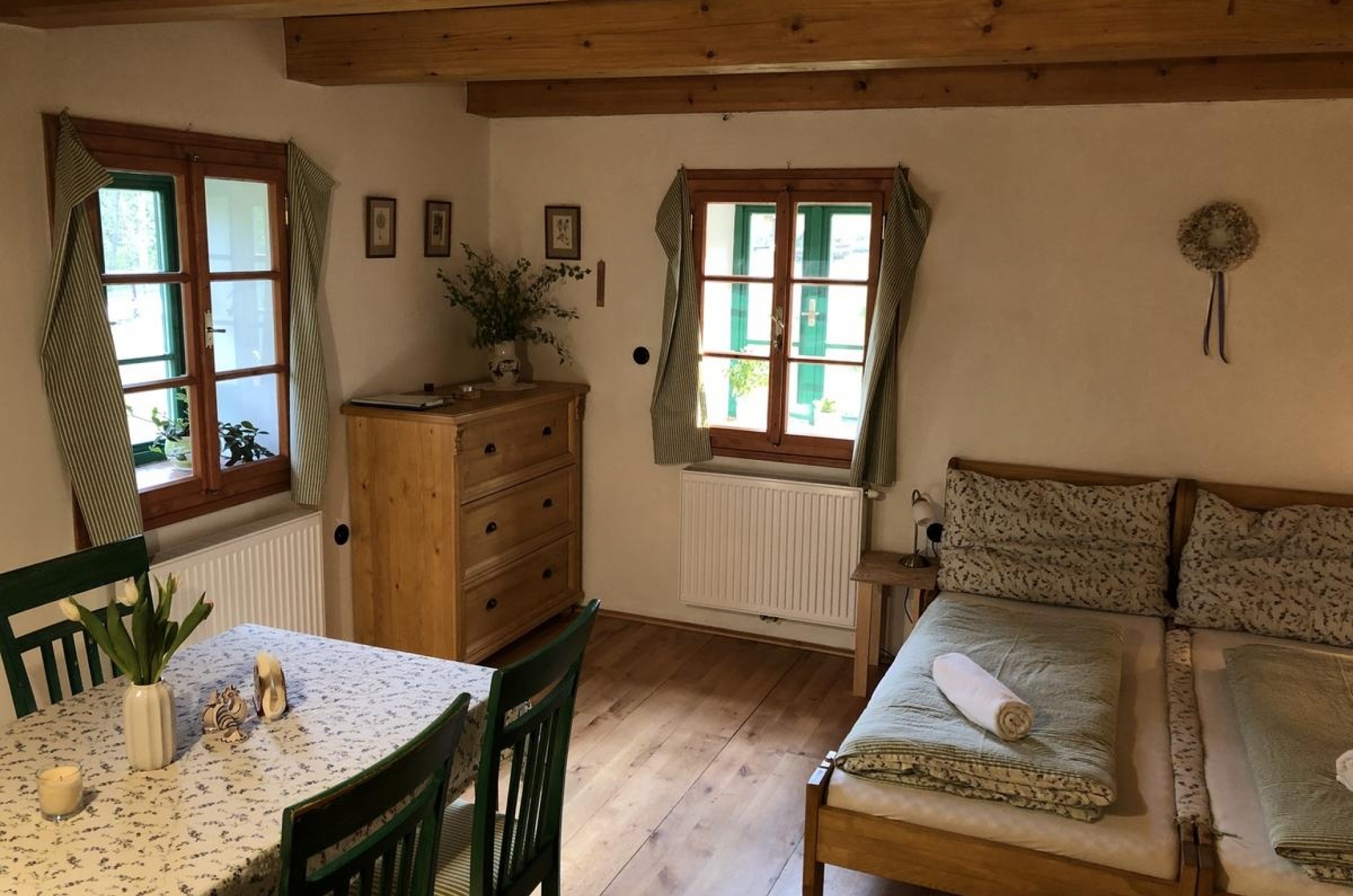 Kapacita celé chalupy je 18 osob - chalupa je rozdělená do 4 apartmánu.