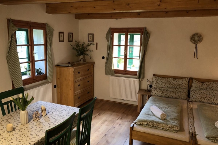 Ocitnete se uprostřed nádherné přírody, pohoda, klid, relax, v sousedství pouze jedna chalupa, originální vybavení v „babičkovském“ stylu.