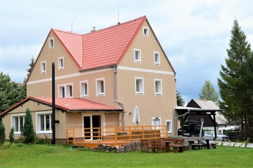 Pokud milujete horskou přírodu, tak jste tu správně. Výhled na Klínovec a Fichtelberg Vás uchvátí a Krušné hory již nevymažete z paměti. Chalupa Výhled se nachází na okraji obce Kovářská v nadmořské výšce 845 metrů, je po kompletní rekonstrukci a funguje celoročně. Maximální kapacita chalupy je 21 míst (včetně dětí). Všechny pokoje jsou vybaveny novým stylovým dřevěným nábytkem, postele kvalitními zdravotními matracemi a voňavým povlečením. Polštáře i peřiny jsou z dutých vláken pro alergiky. Terasovitá oplocená zahrada o rozlozes dětským hřištěm (pískoviště, houpačky, velká trampolína) má i velké ohniště s posezením, gril s udírnou G21 se stoly a lavicemi, komfortní ratanové pohovky na terase, různá romantická zákoutí s výhledem.