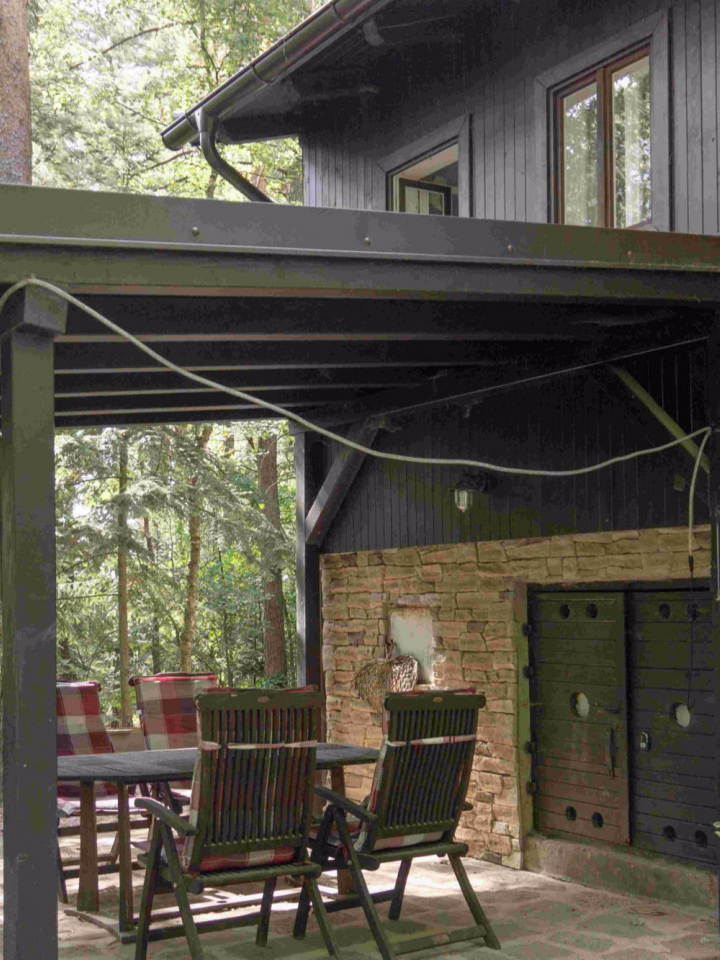 Velmi příjemné posezení pod venkovní pergolou.