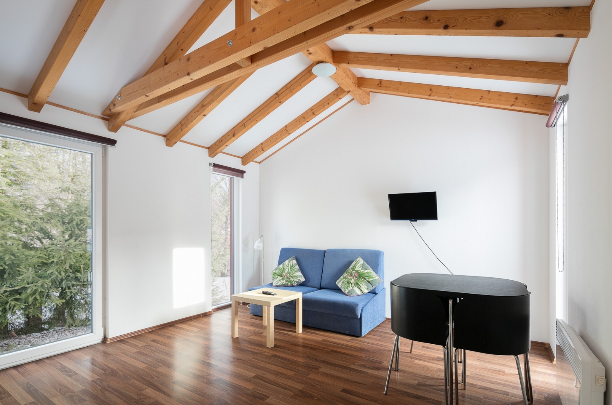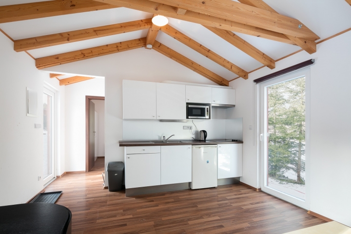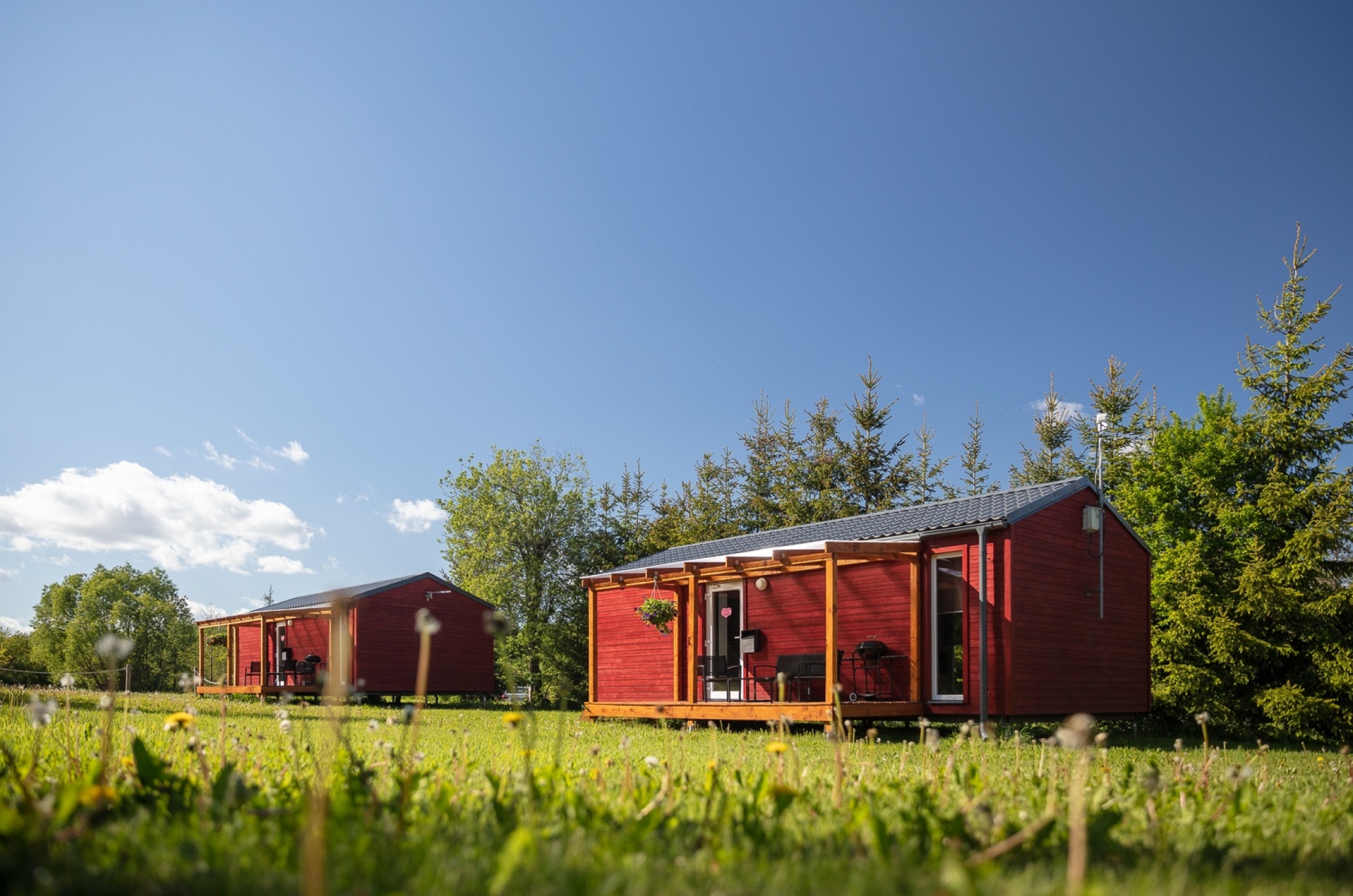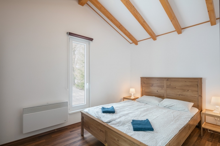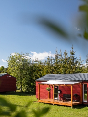Mobilní domky se za poslední dekádu vybrousily k naprosté dokonalosti. Zvlášť tyhle pod Liščím kopcem. Dvě krásné dřevostavby pojmou každá po čtyřech nocležnících. Dispozice je to 2+kk. Uvnitř je ložnice s dvojpostelí a šatní skříní, sociální zařízení s toaletou a sprchovým koutem, obývací pokoj, moderní a plně vybavená kuchyňská linka. Venkovní terasa s posezením včetně grilu je součástí.